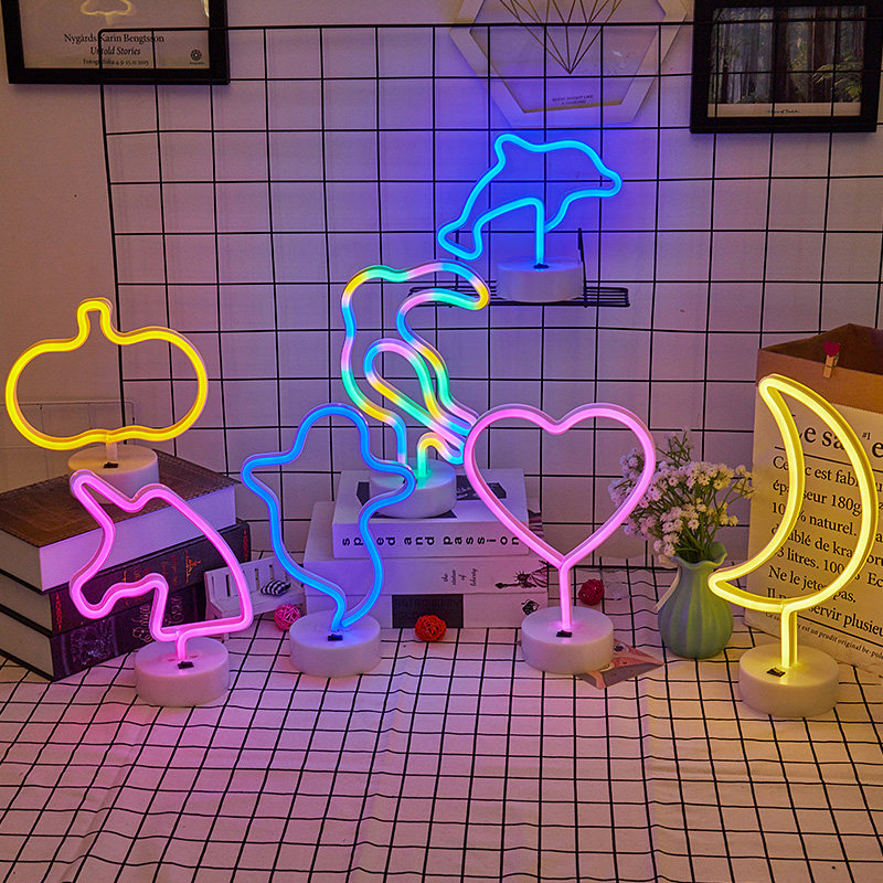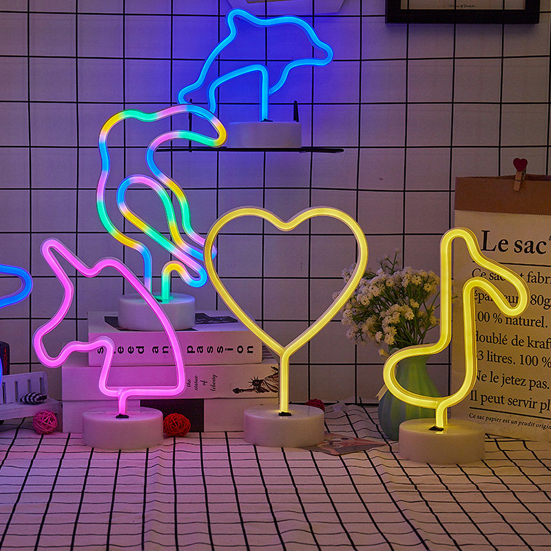 Единорог назад, осветительная девушка сердце неоновое декоративное предложение, предложение ins -ночная светлая коробка любви сеть красная стойка лампы