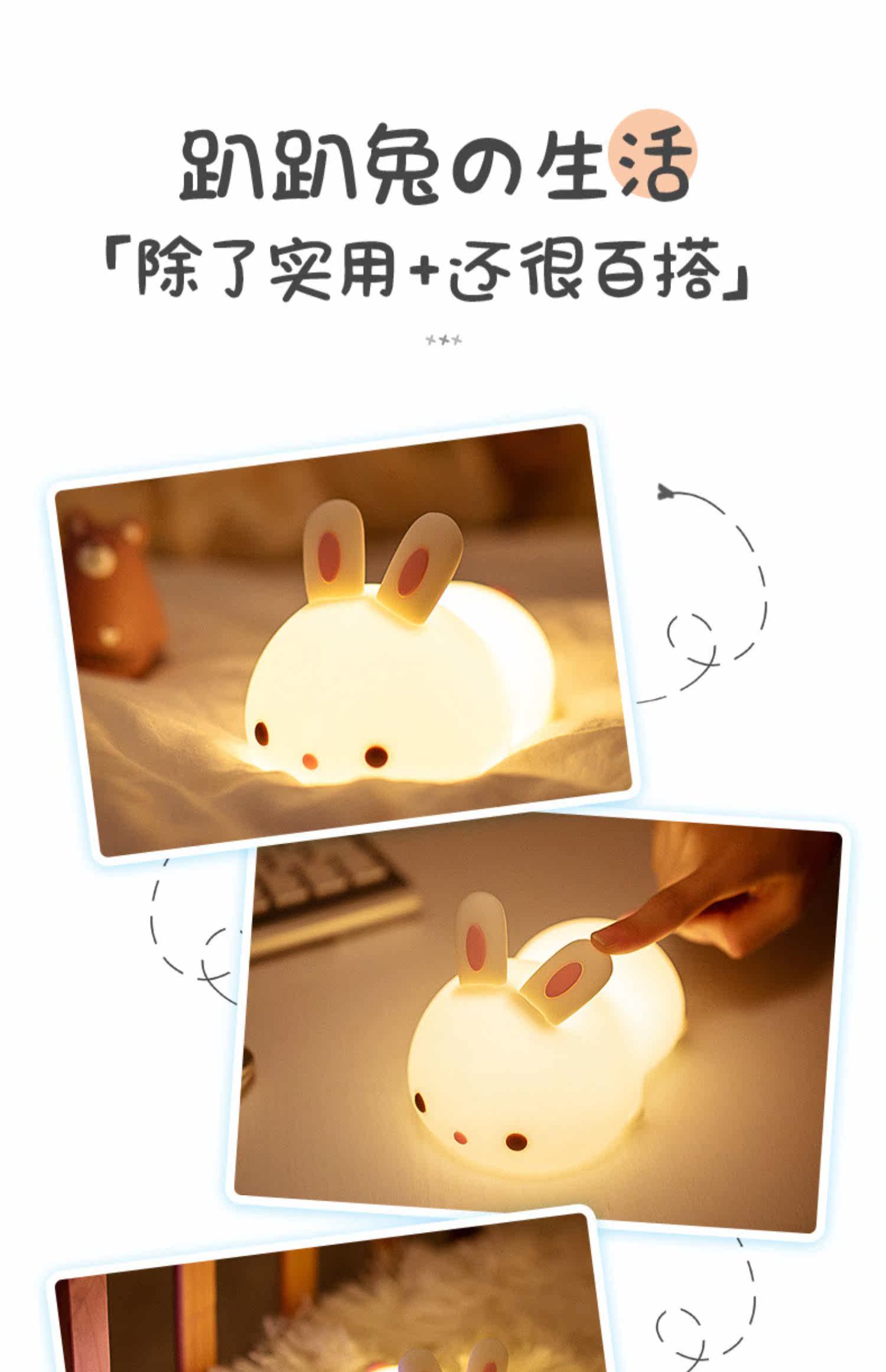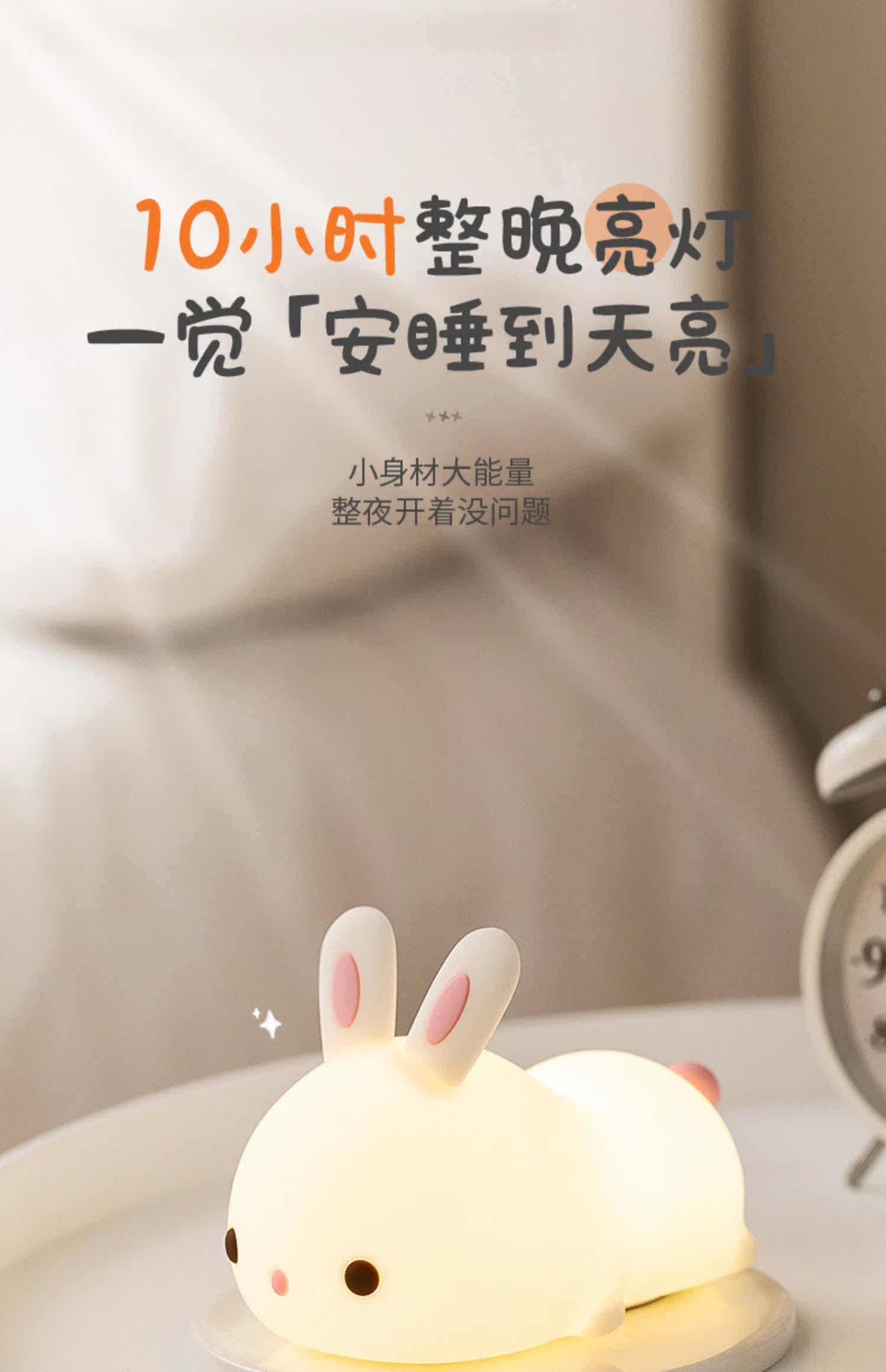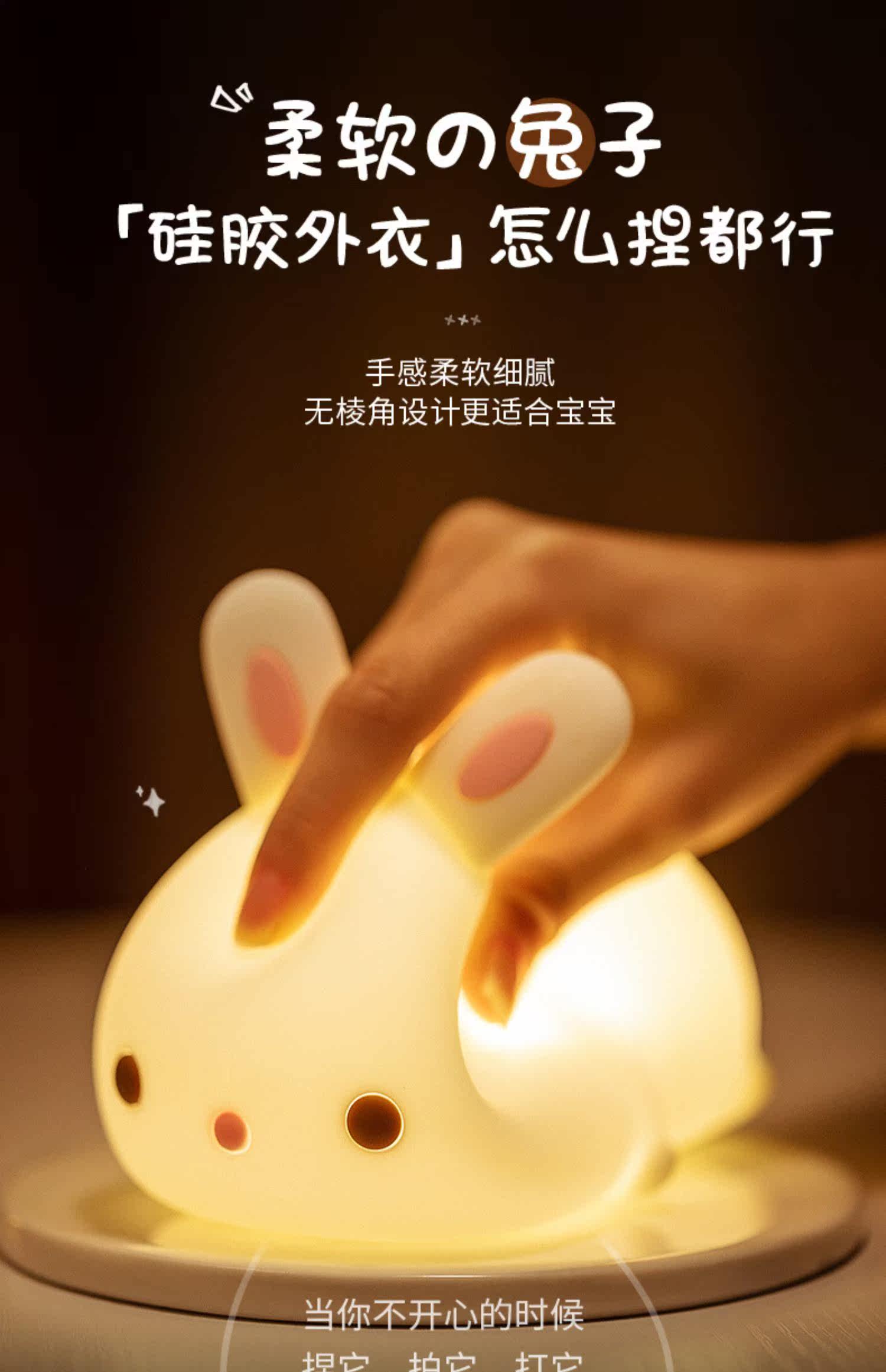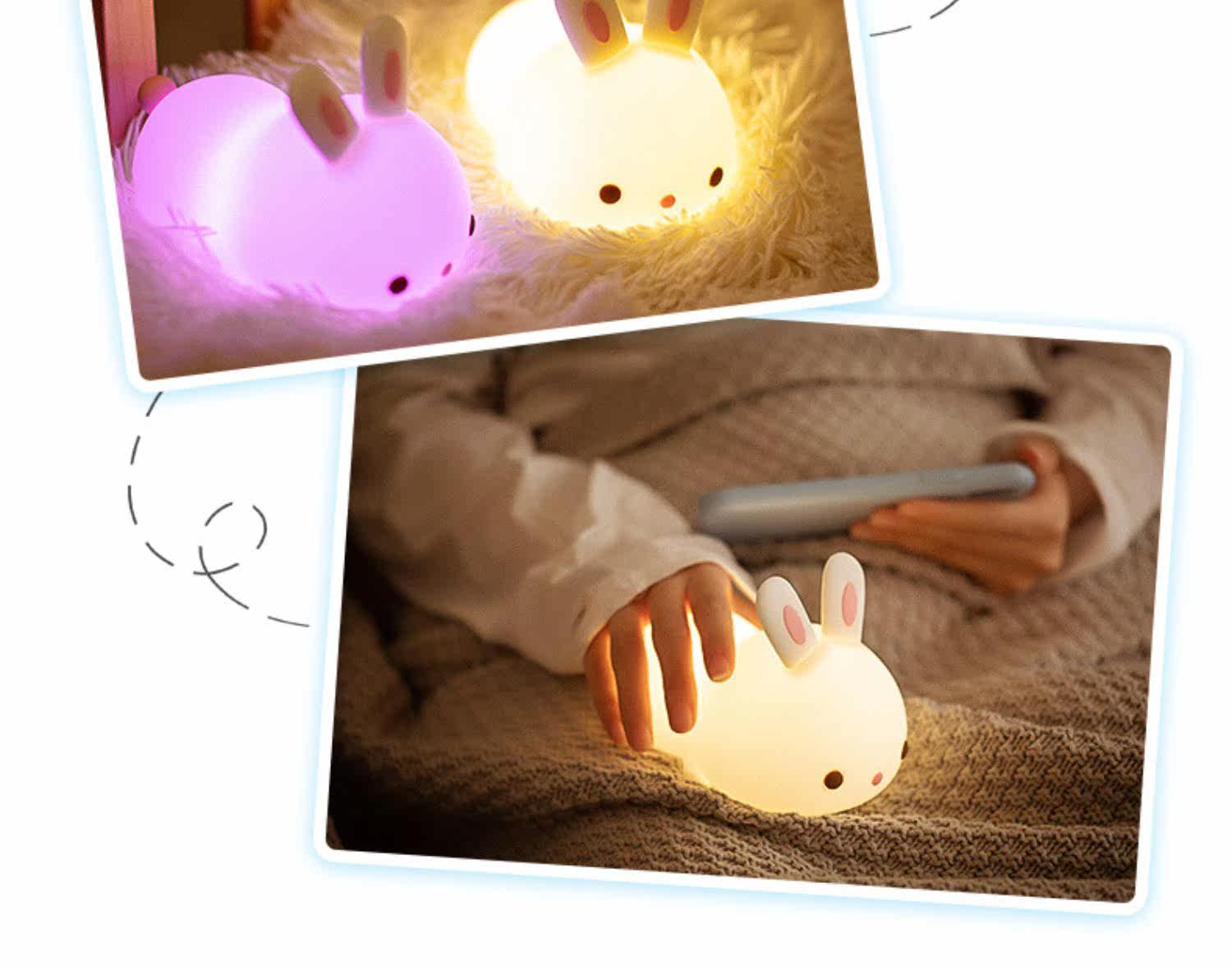 Кролик, милый силиконовый ночник для кровати, антистресс, подарок на день рождения