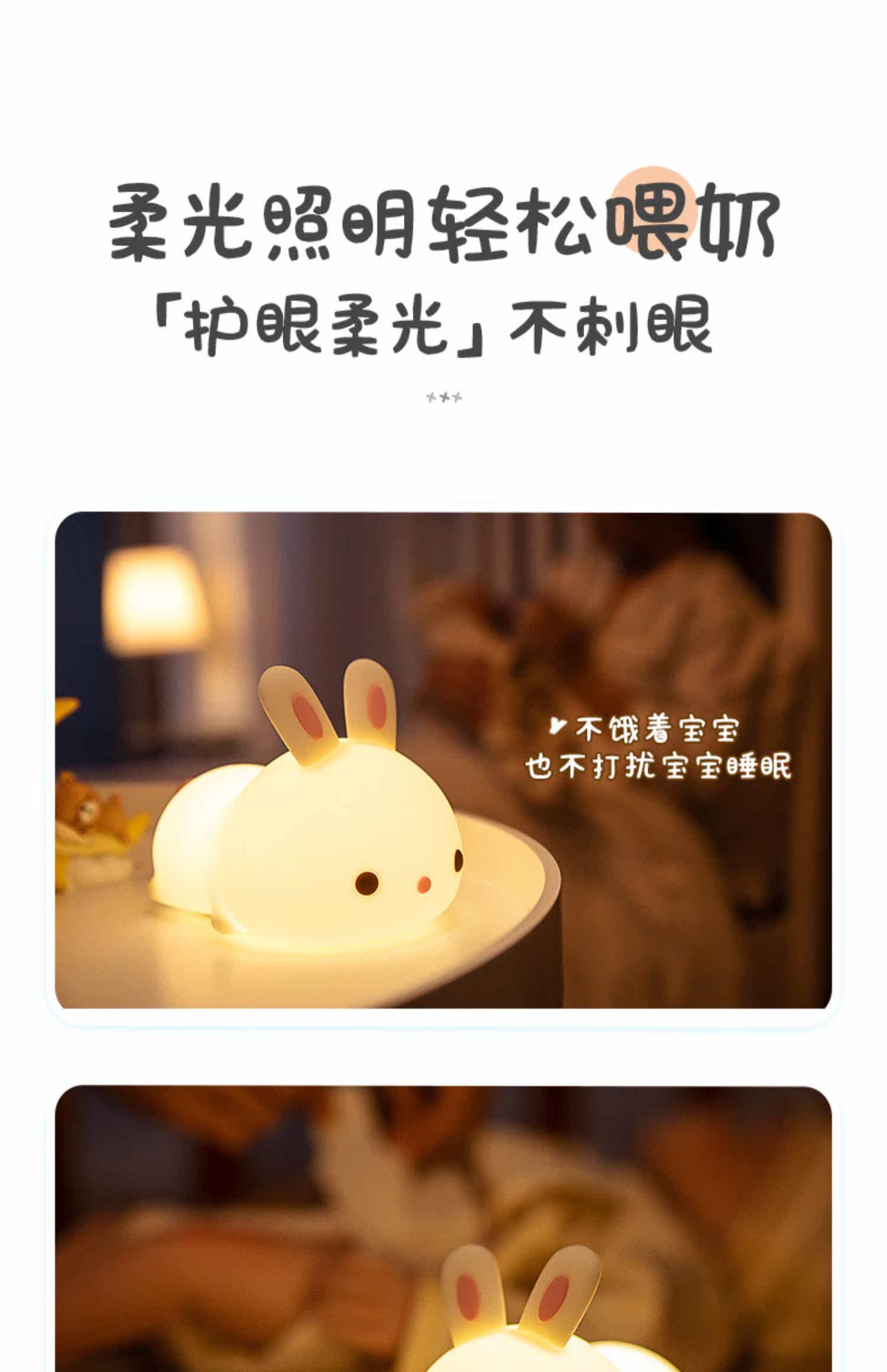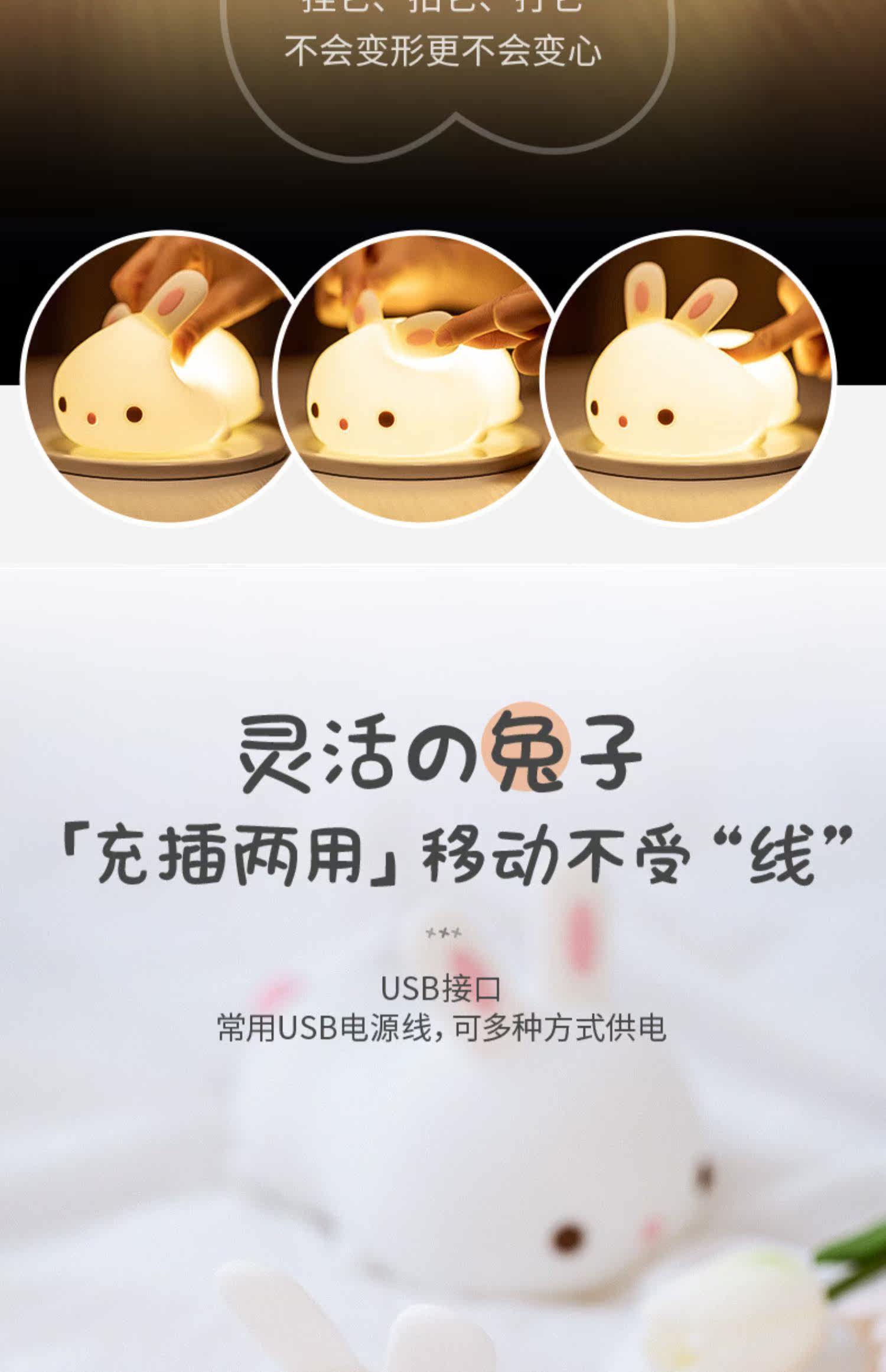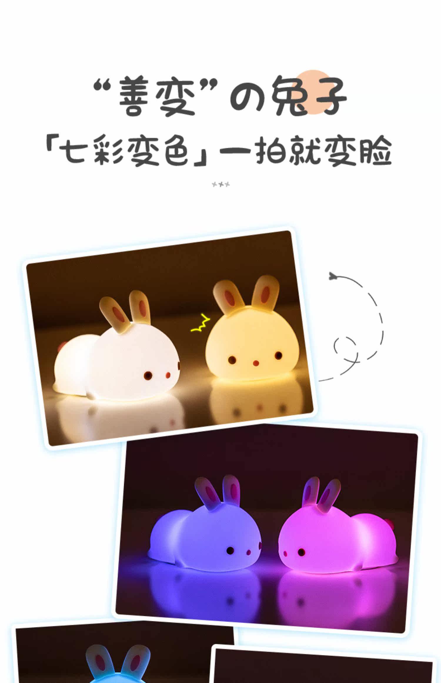 Кролик, милый силиконовый ночник для кровати, антистресс, подарок на день рождения