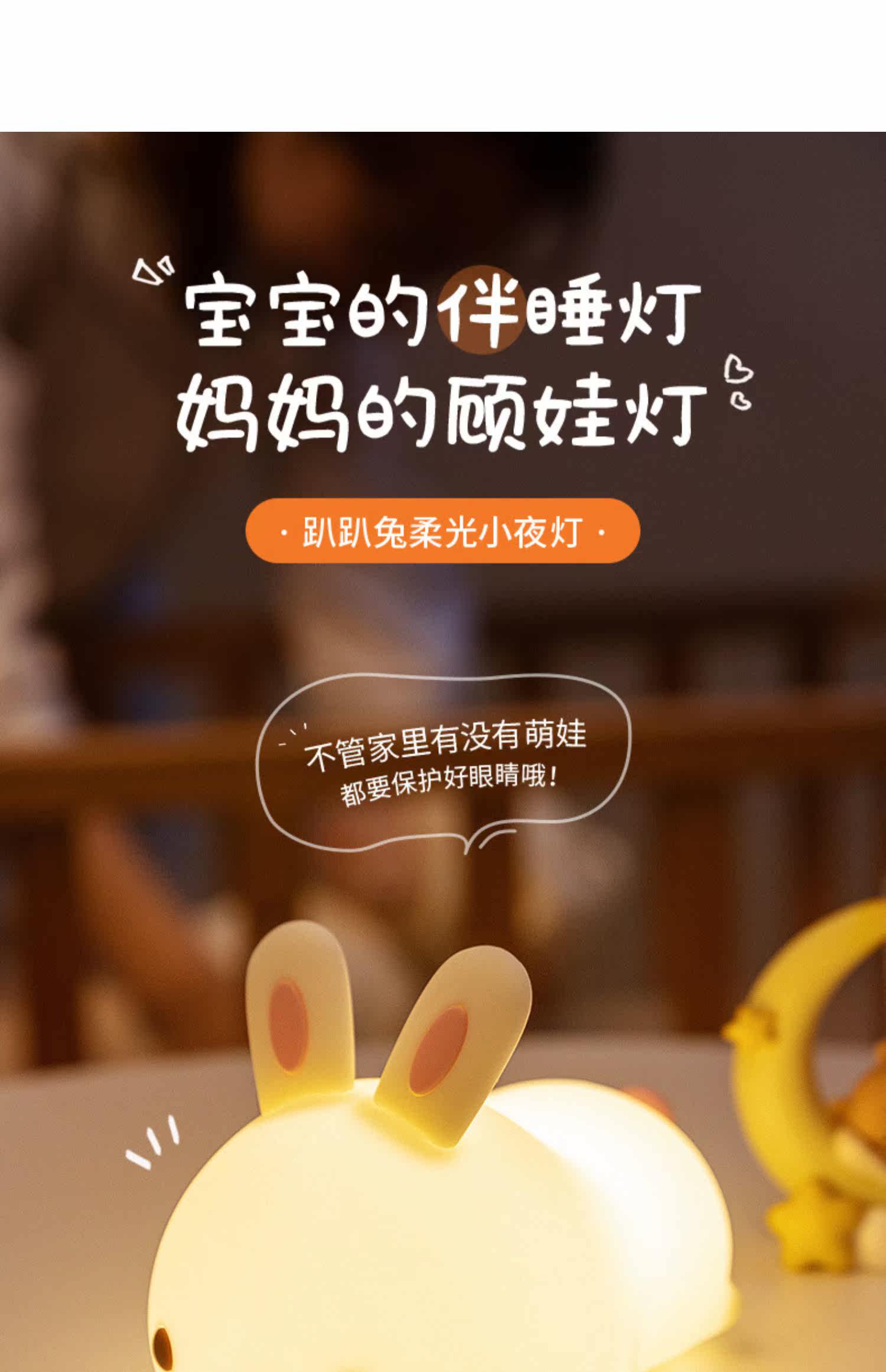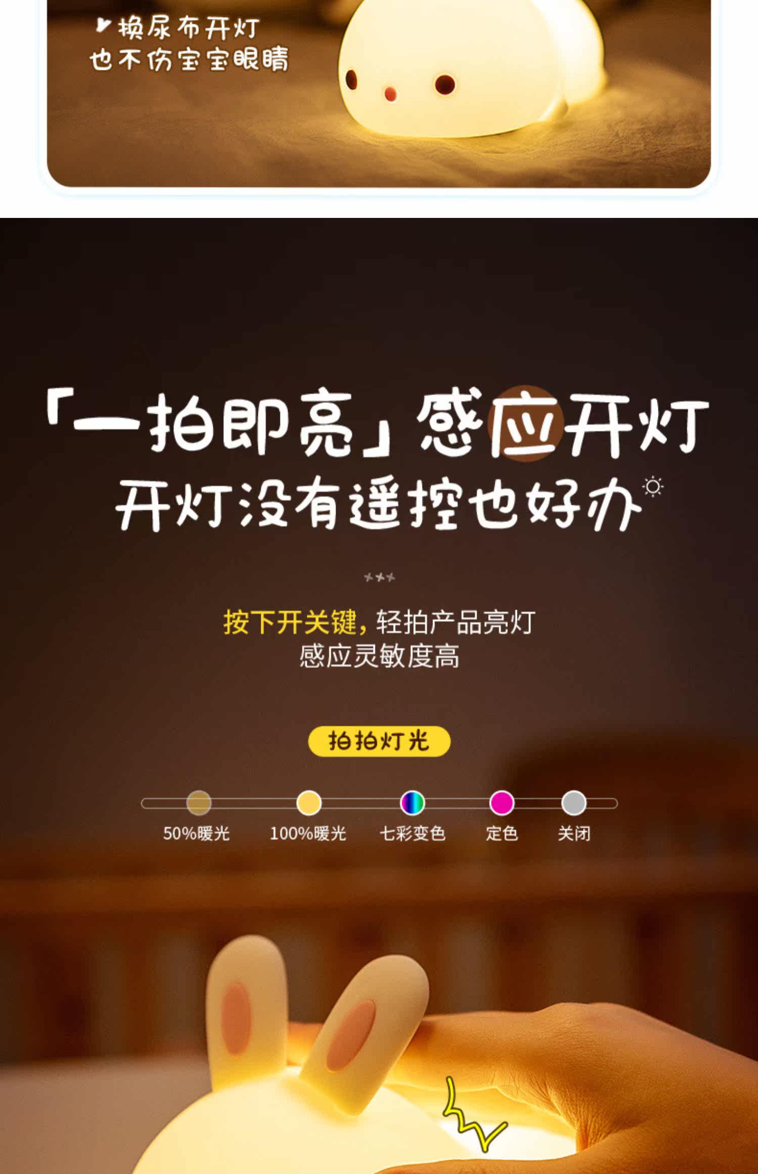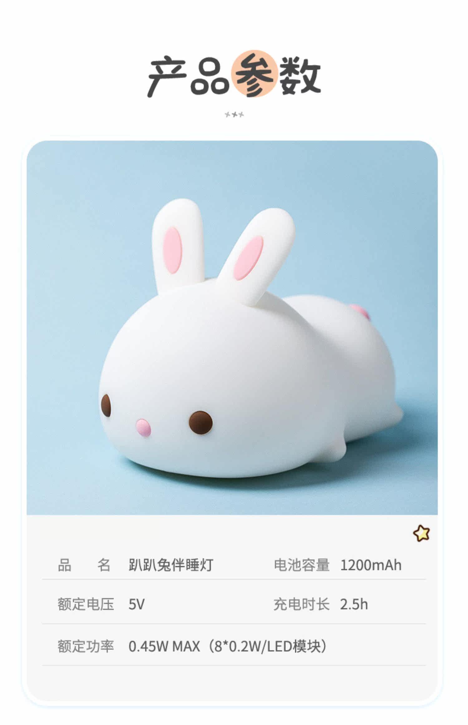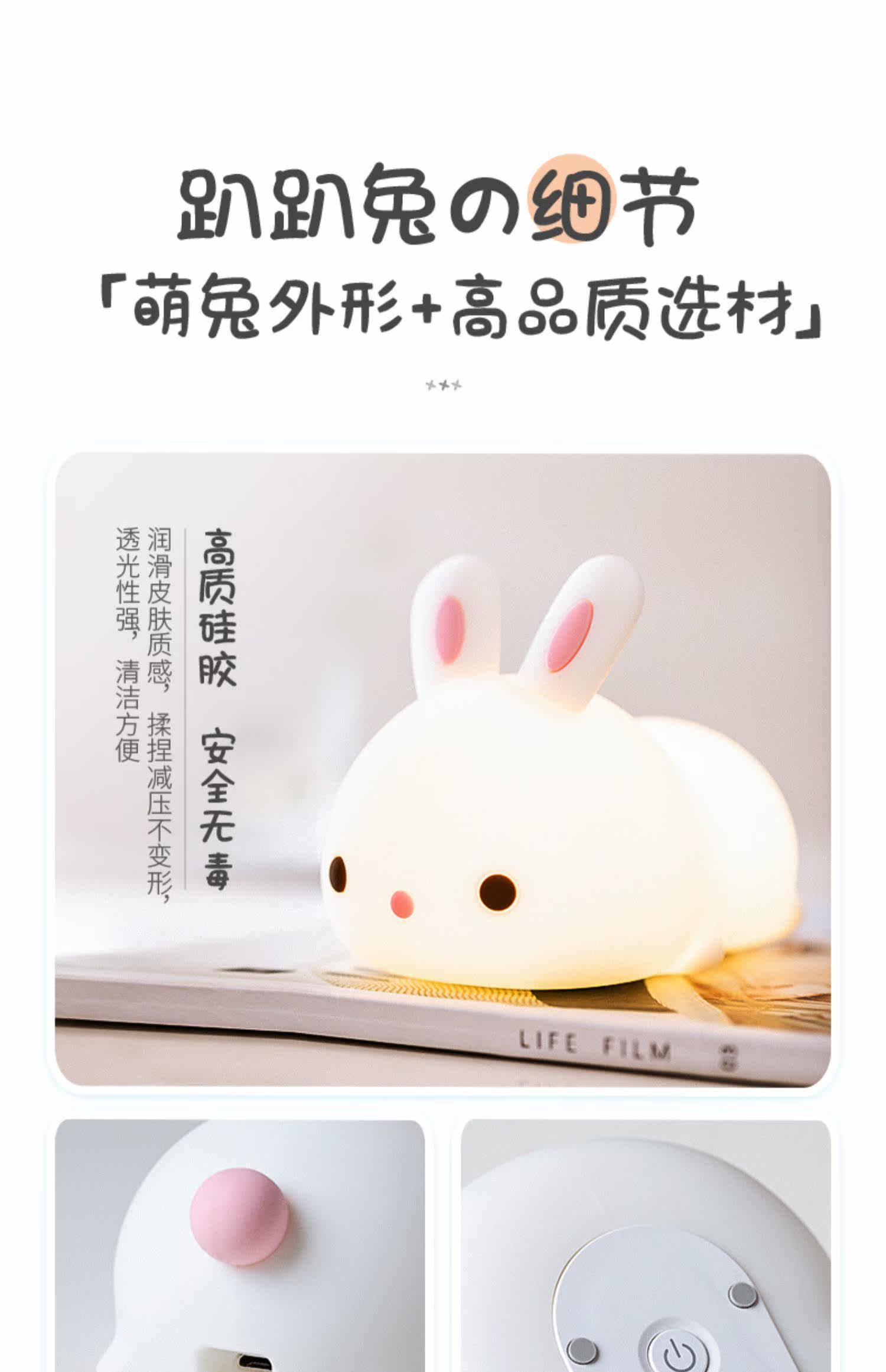 Кролик, милый силиконовый ночник для кровати, антистресс, подарок на день рождения