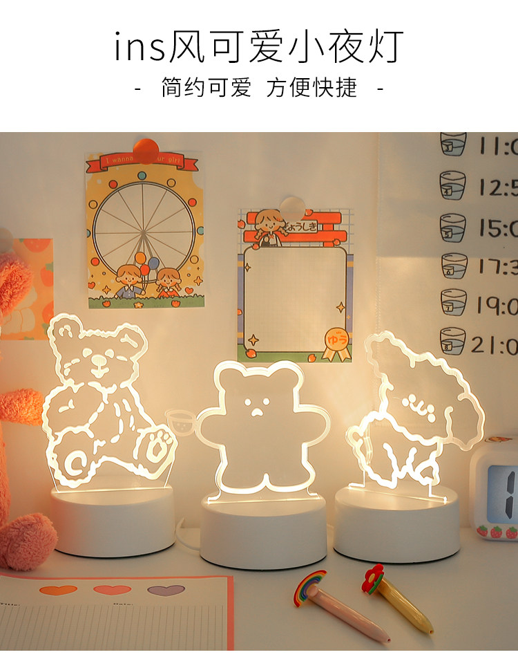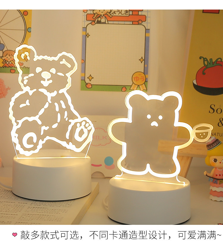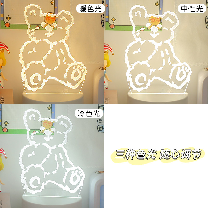 Креативный трехмерный ночник для кровати, милая настольная лампа, светильник для спальни, 3D, с медвежатами, защита глаз
