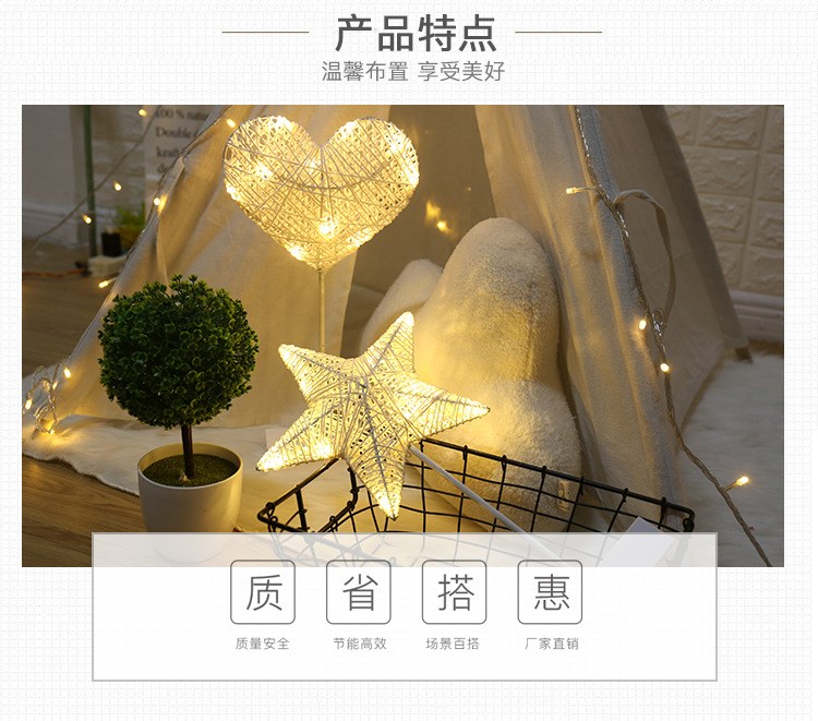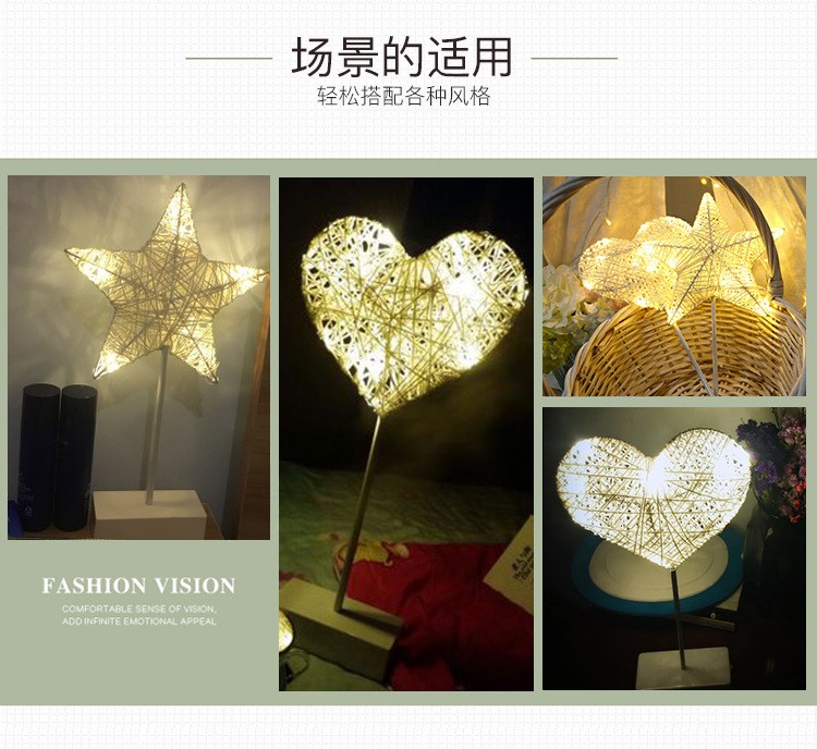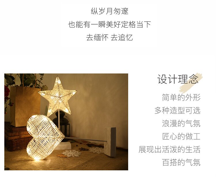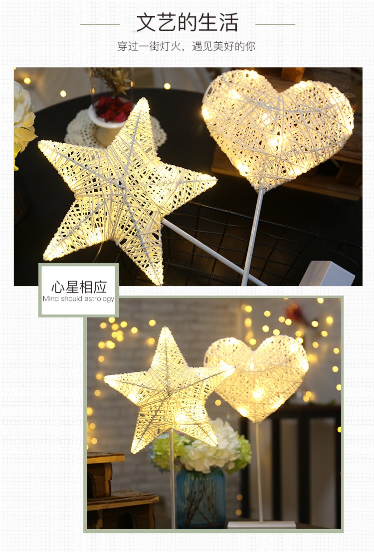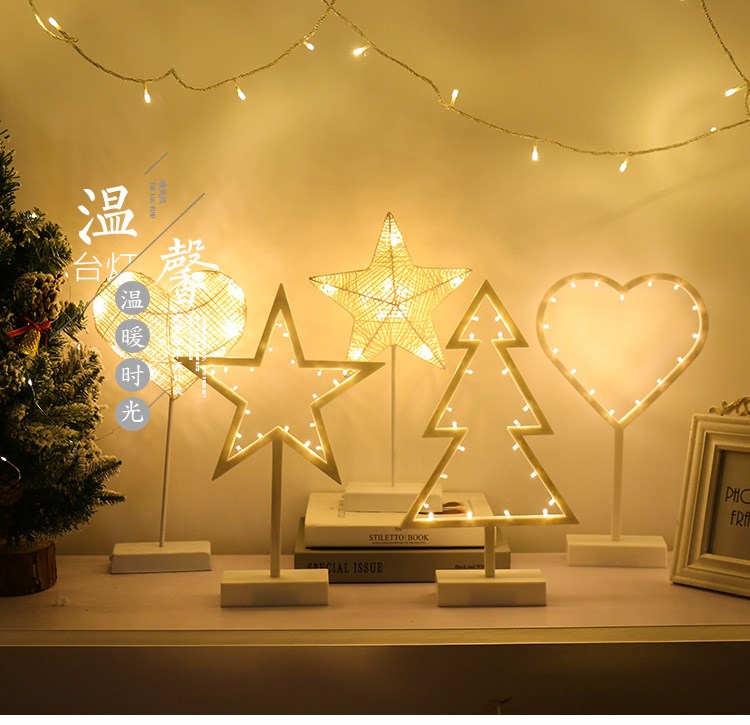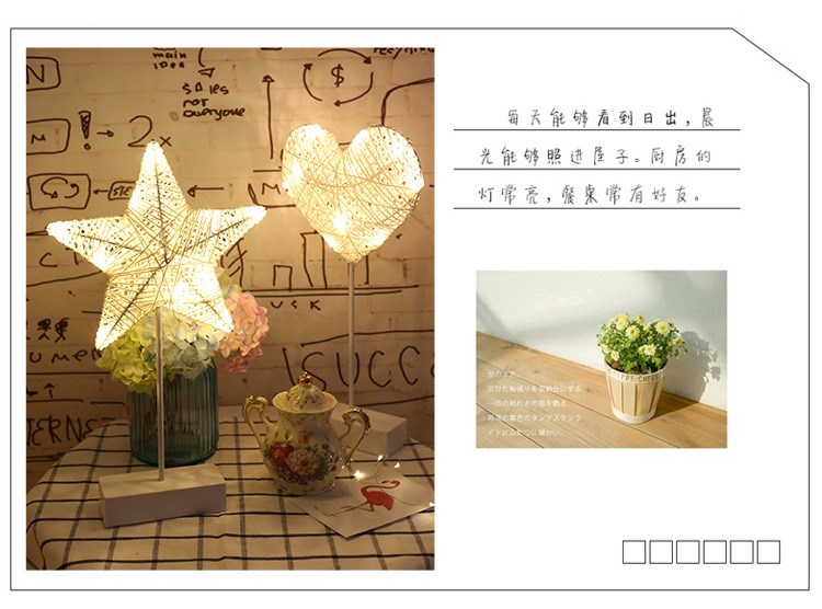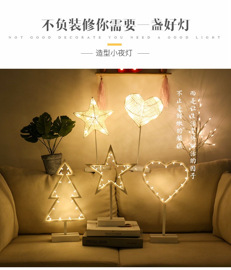 Ins в скандинавском стиле, настольная лампа со звездой, ночник, фонарь для комнаты, общежитие, украшение в форме сердца для девочек, лампа для спальни