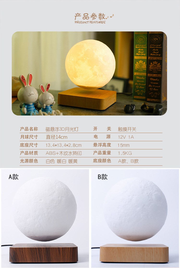Магнитная левитация, луна, атмосферный креативный ночник для спальни, настольная лампа, 3D, подарок на день рождения
