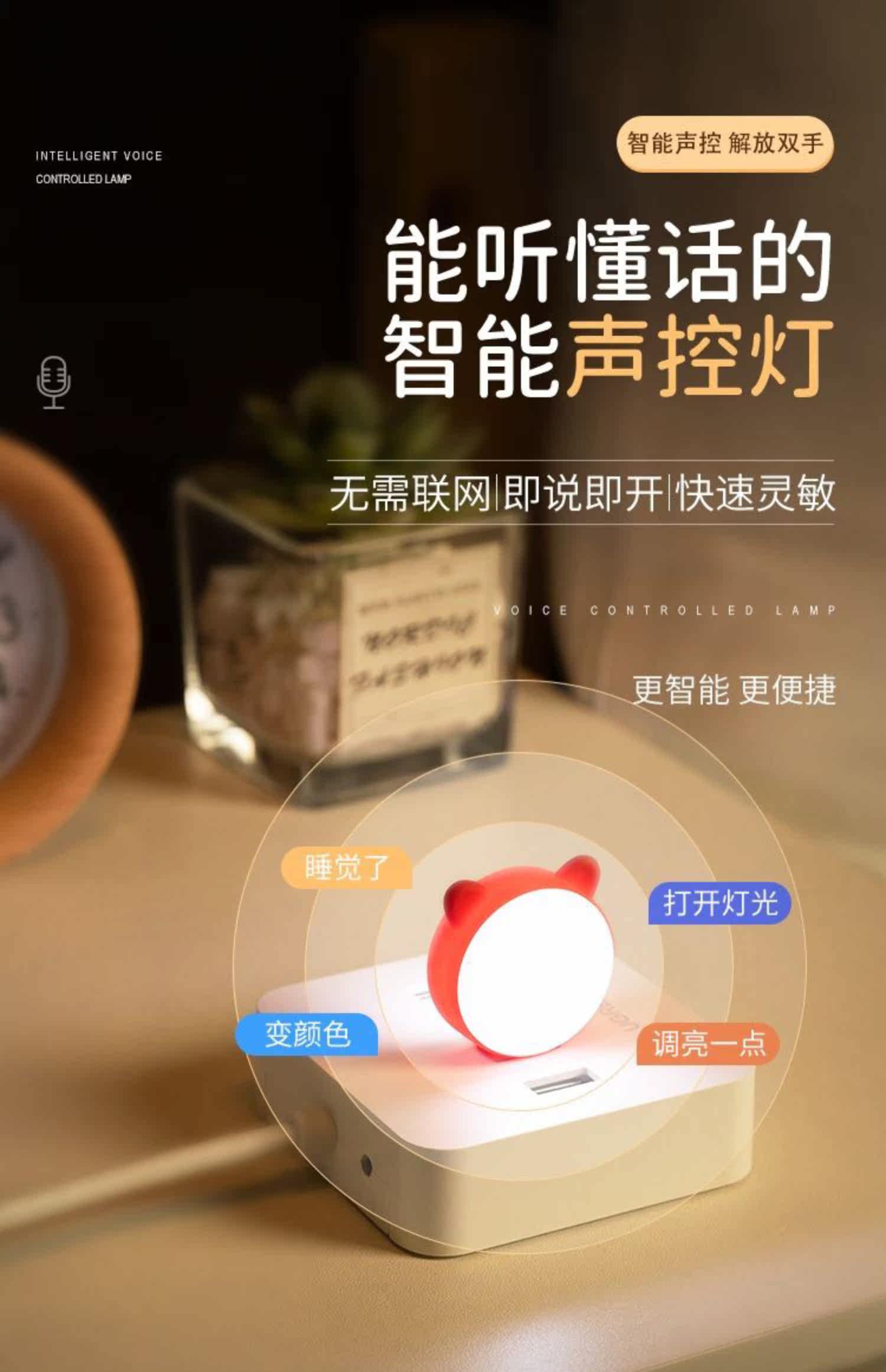 USB Xiao Night Light Light Artifical Intelligence Control Voice Light светодиодный звук