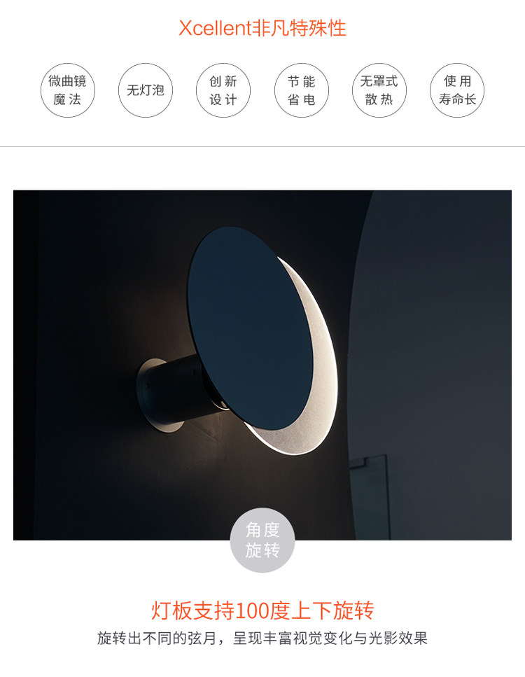 Лампа в виде луны, современное и минималистичное светодиодное креативное бра для кровати для гостиной, китайский стиль