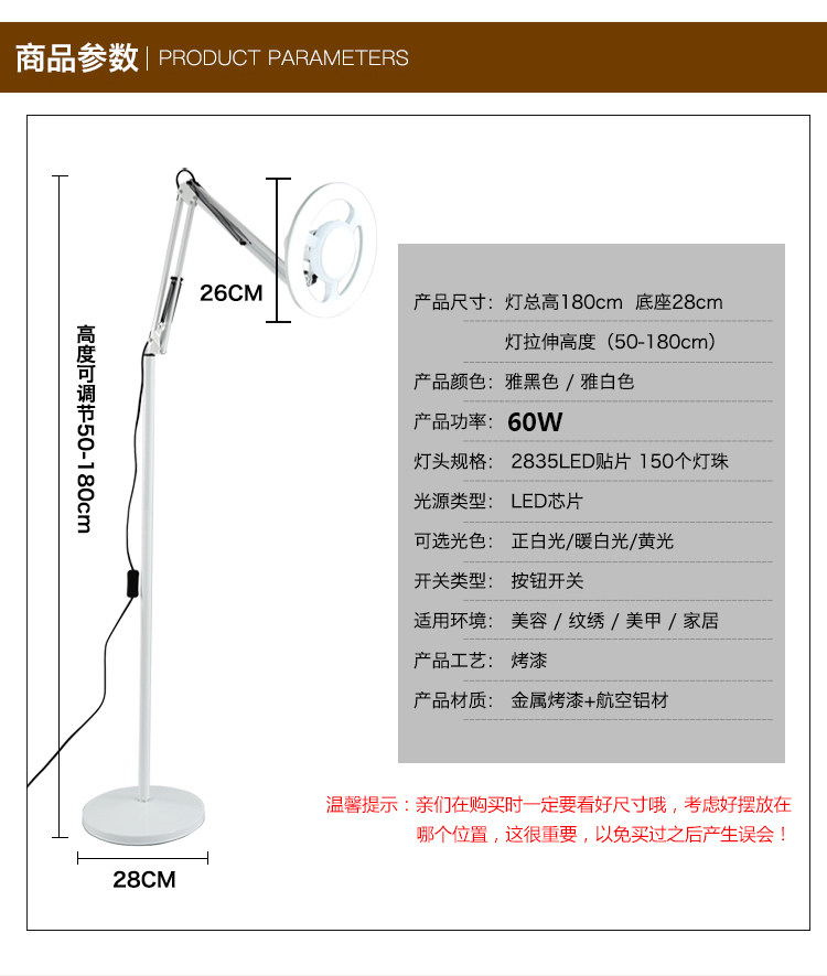 Светодиодный торшер для ресниц, косметическая лампа, напольная татуировка для маникюра