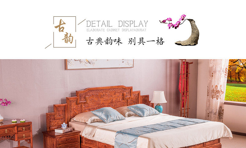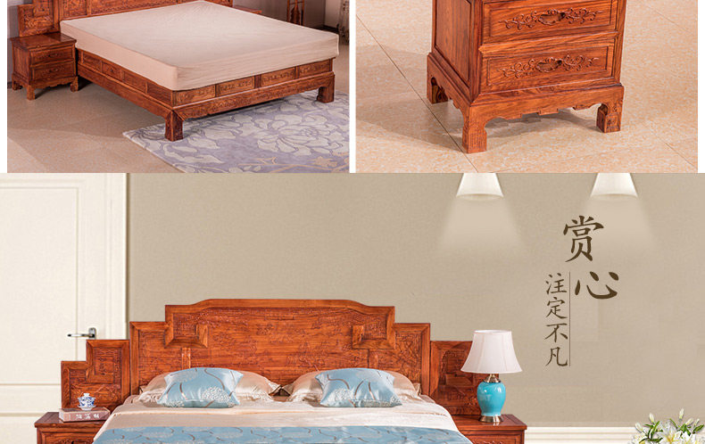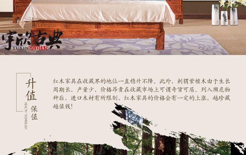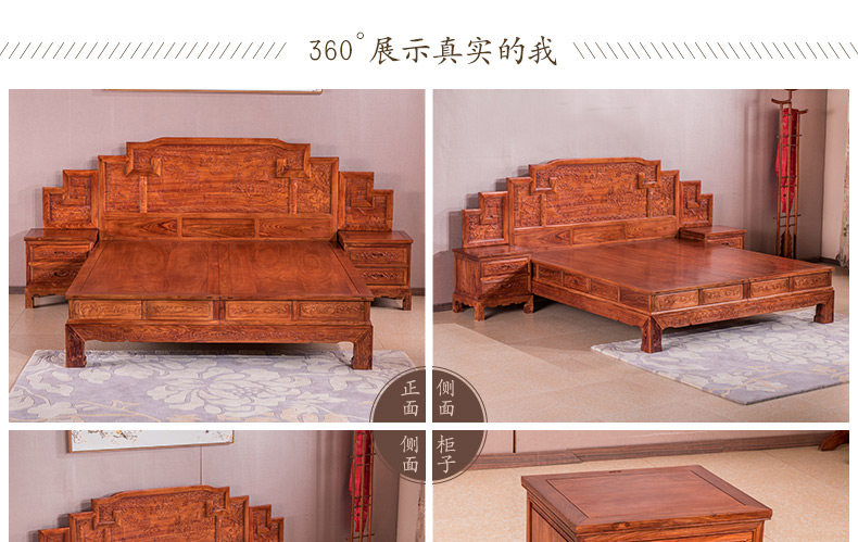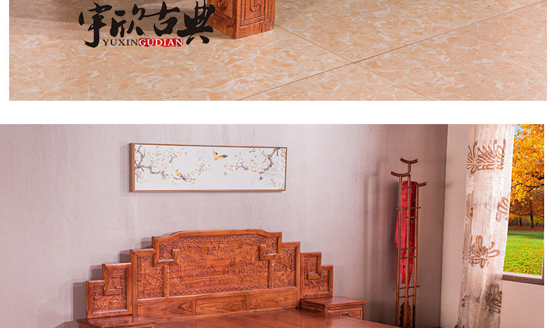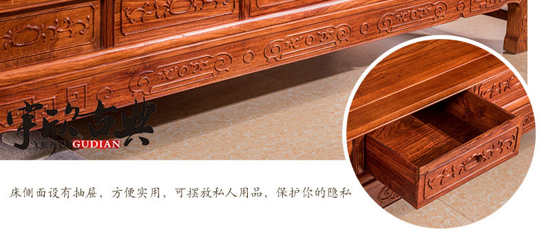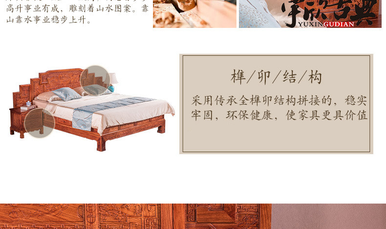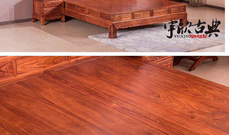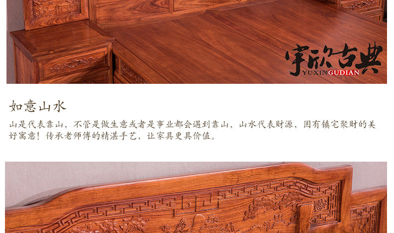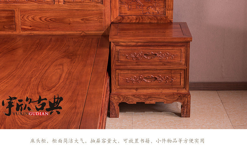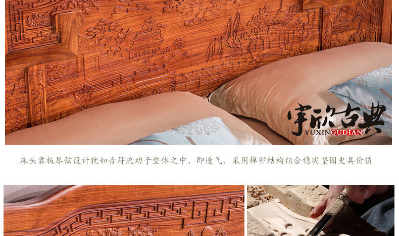 宇欣古典 Китайский стиль сплошной древесной кровать красное дерево, антикварная резная мебель для спальни с двуспальной кроватью YX304