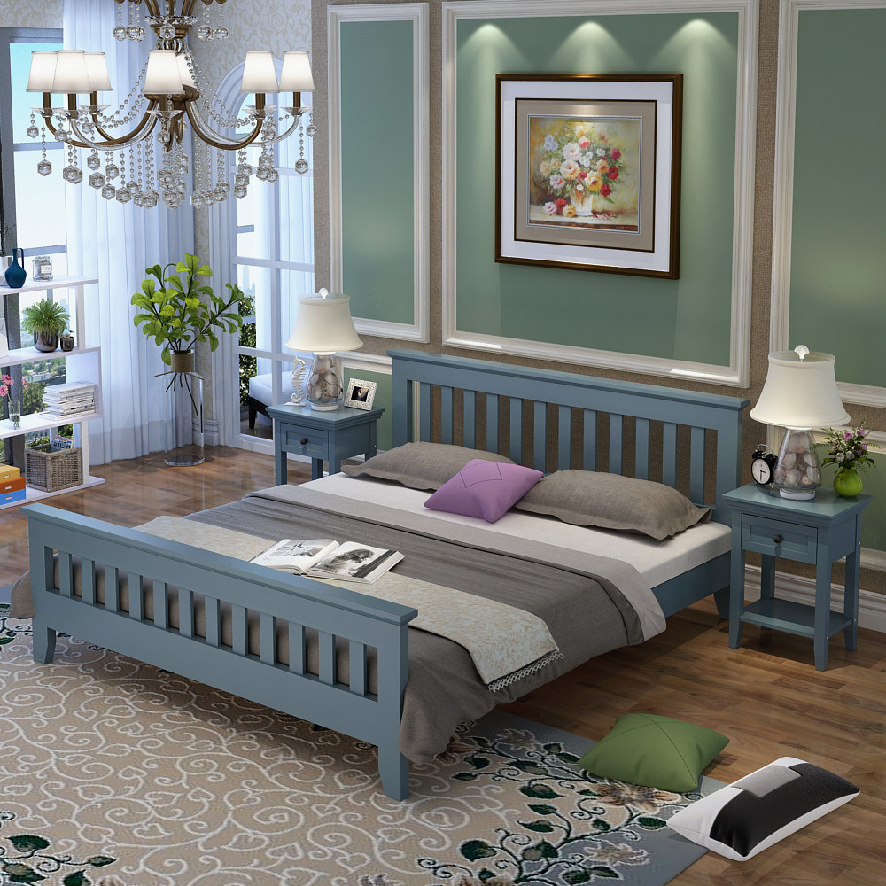 Американская сельская сельская современная минималистская деревянная кровать маленькая квартира Северная спальня 1,8 метра с двойной белой большой белой кровати Бесплатная доставка