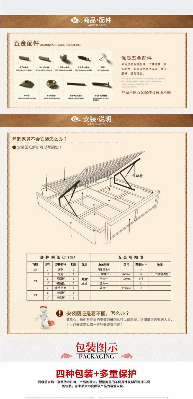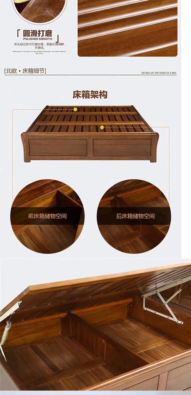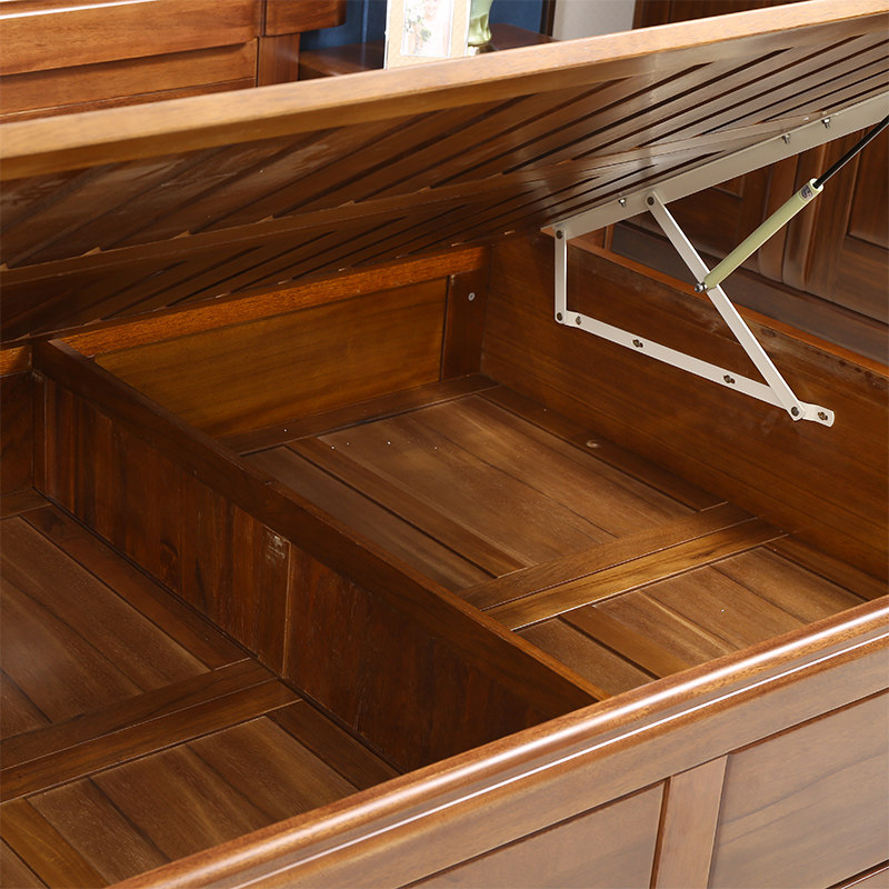 爱绿居 Ho Tao Wood Wood Lood Bed Новая китайская полная деревянная двуспальная кровать пневматическая коробка для хранения коробки для хранения коробки