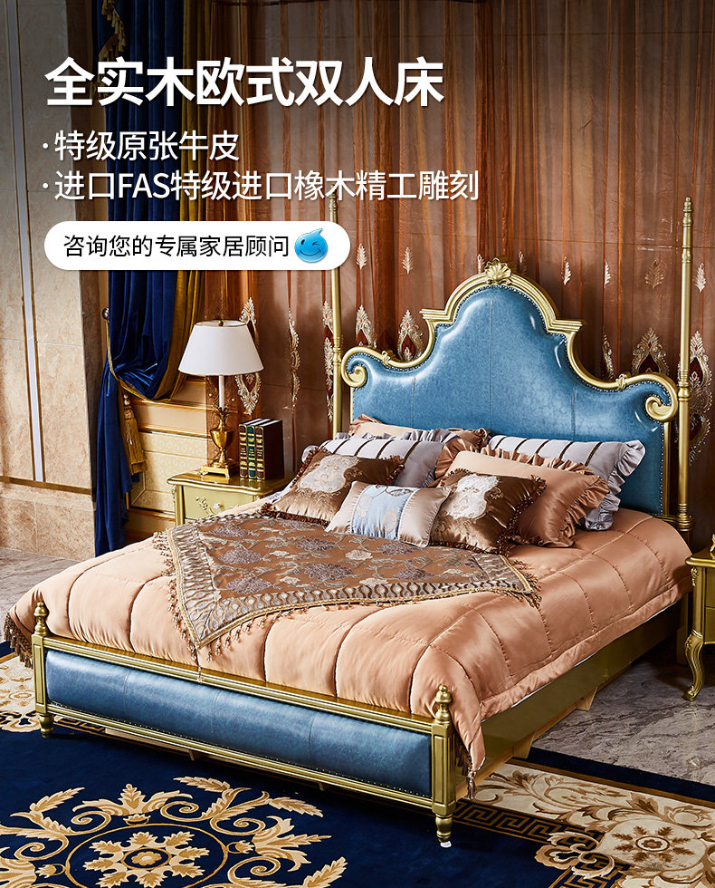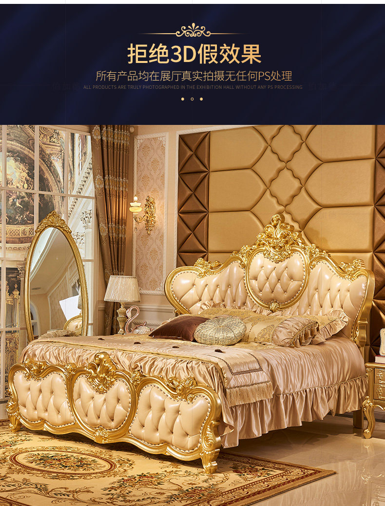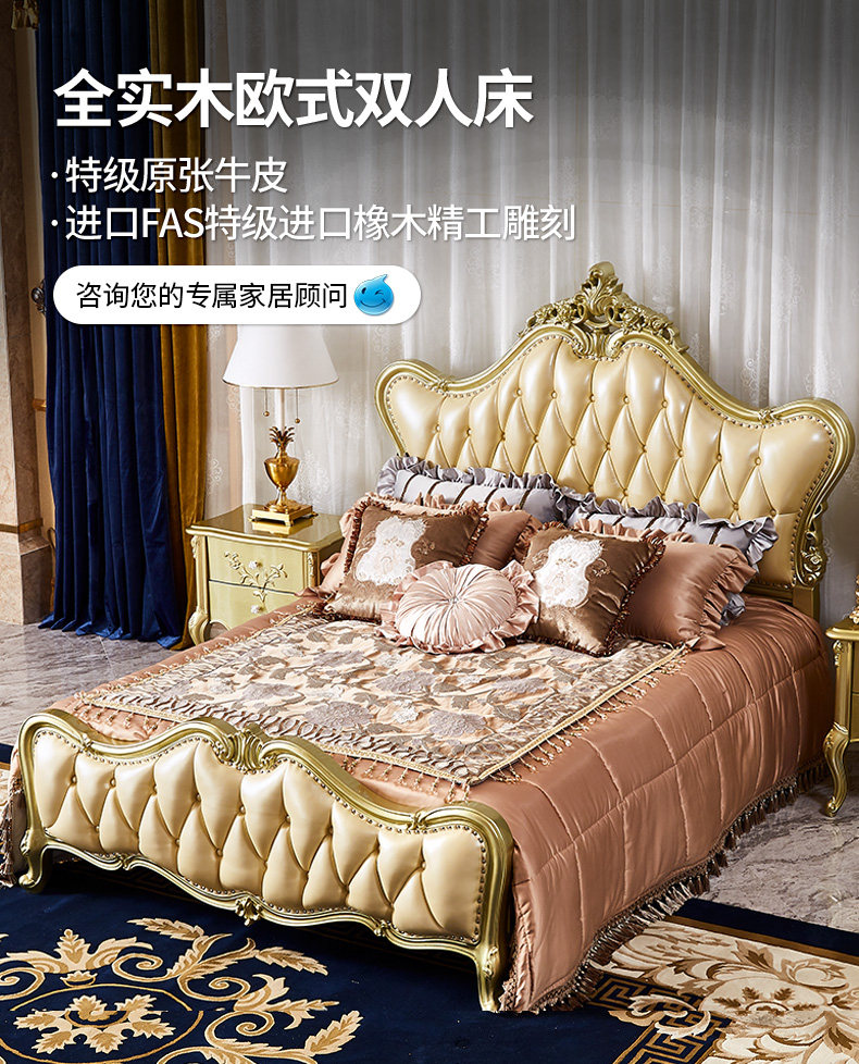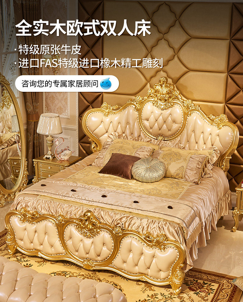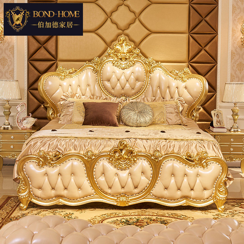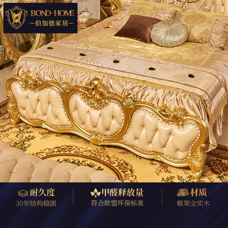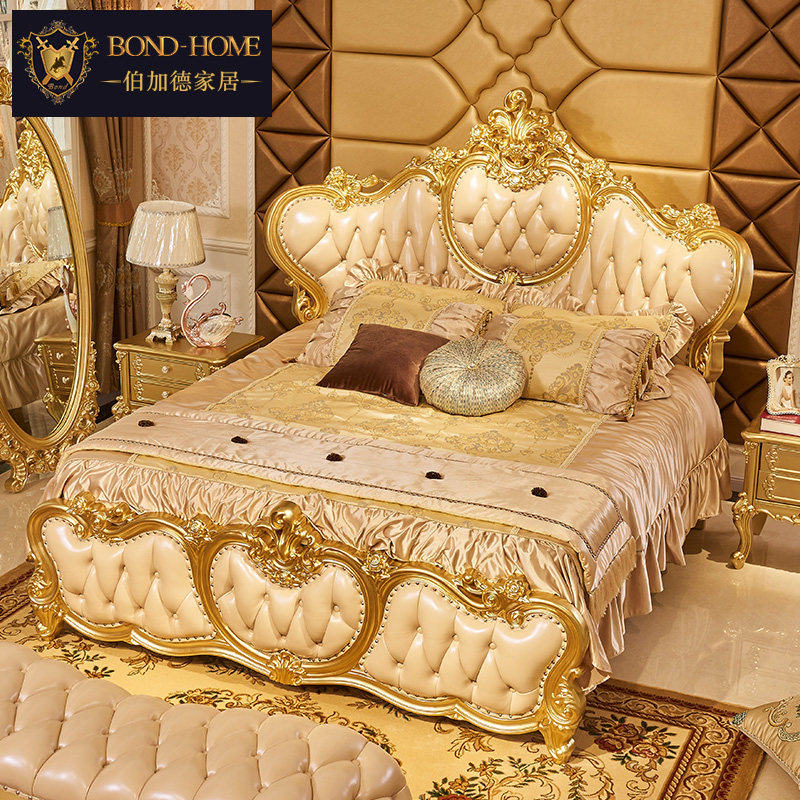 Кровати в стиле европейского стиля, главная спальня с высокой вырезанной большой большой кровать, двойная 2,2 метра свадебной кровати дуб -кровать
