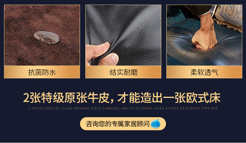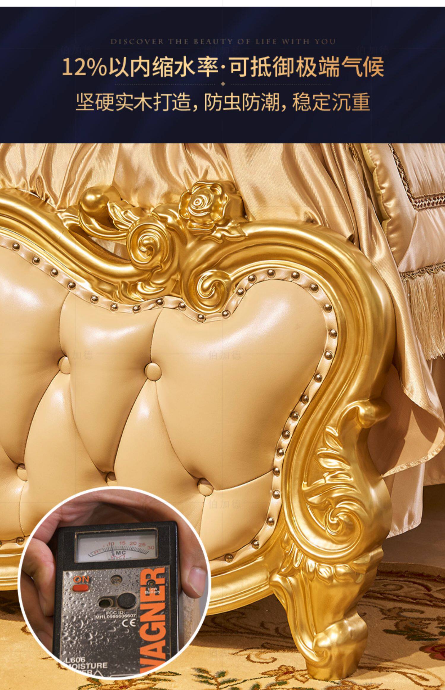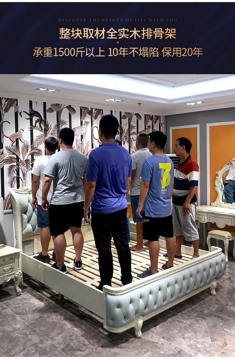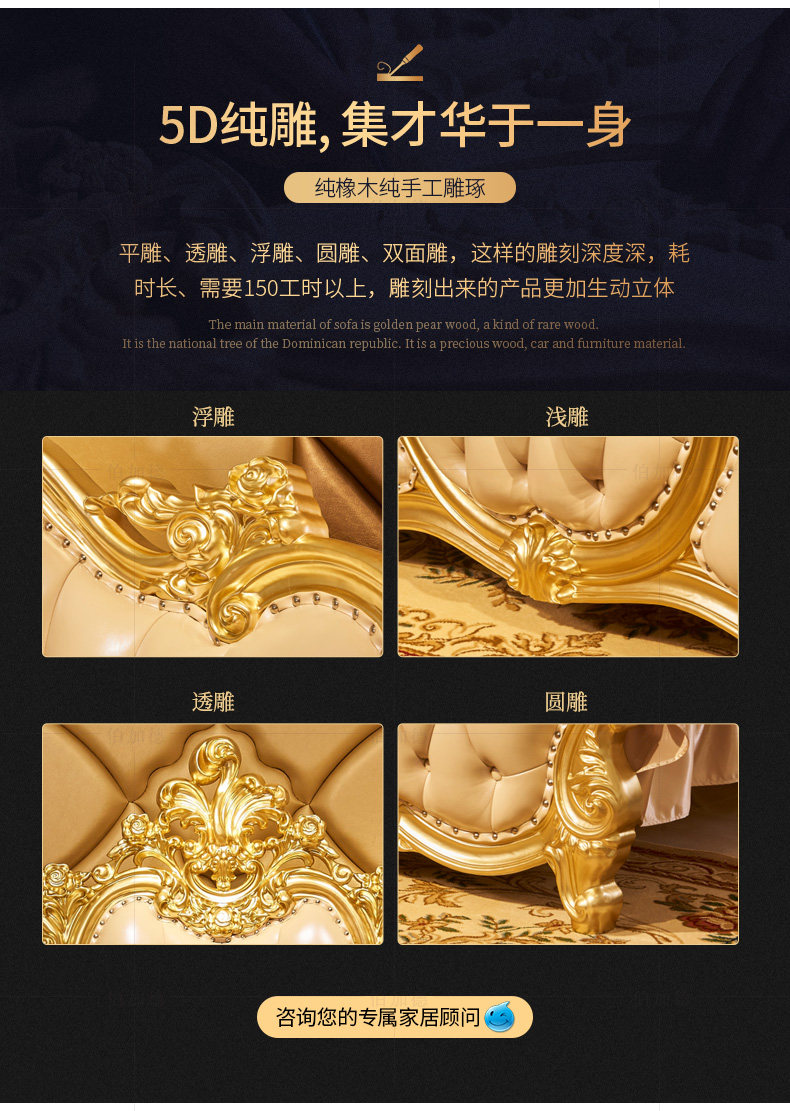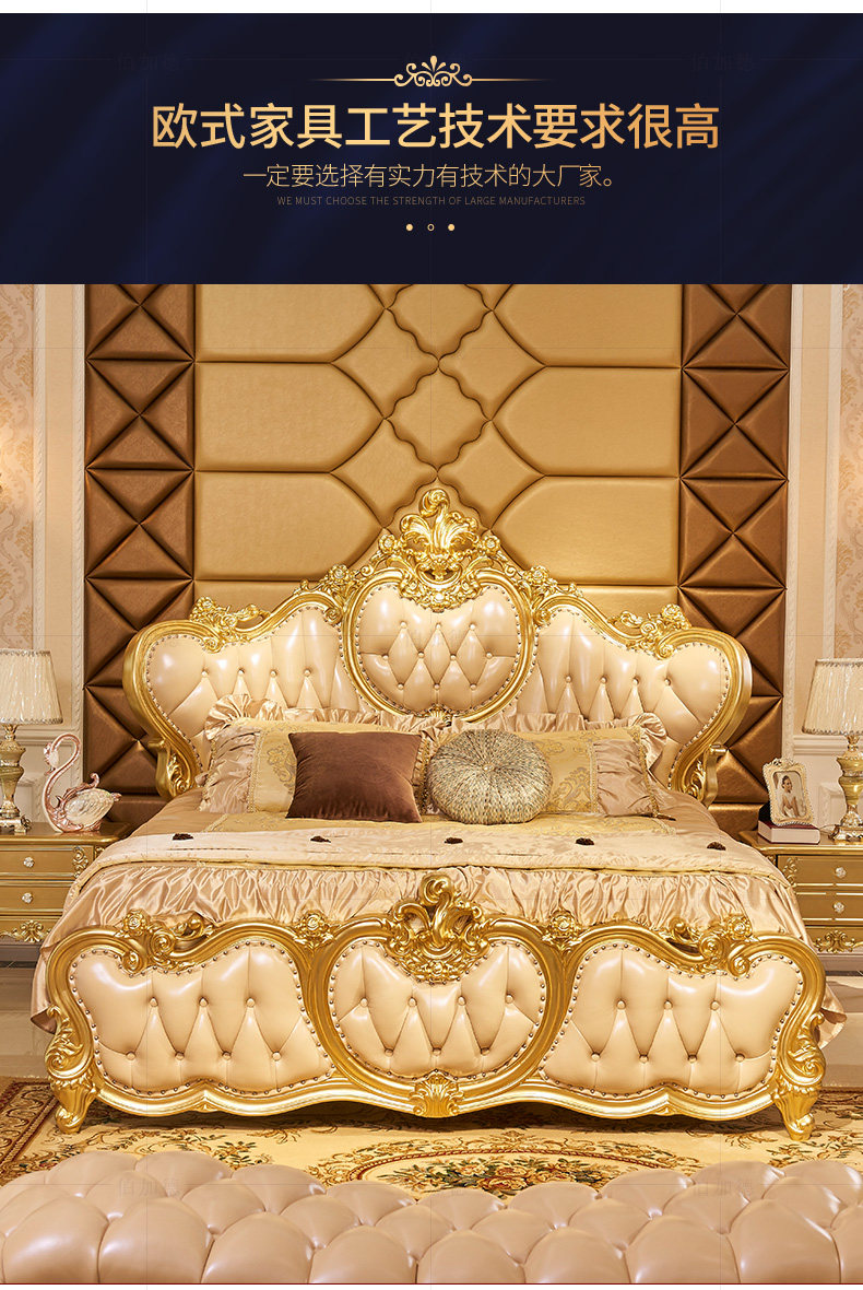 Кровати в стиле европейского стиля, главная спальня с высокой вырезанной большой большой кровать, двойная 2,2 метра свадебной кровати дуб -кровать