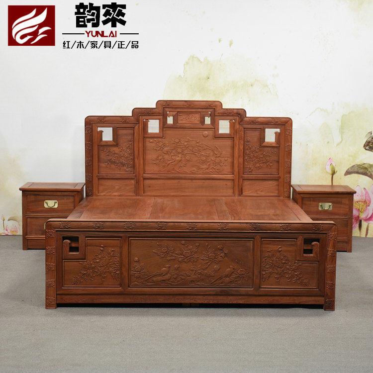 Myanmar Rosewood 1 метр 8 резной кровать с коробкой с местом для хранения ящиков, большой фруктовый розовый древесина из красного дерева красное дерево кровать