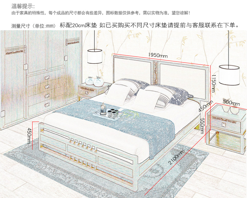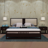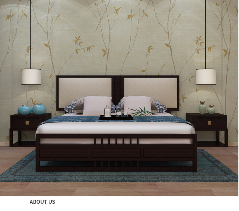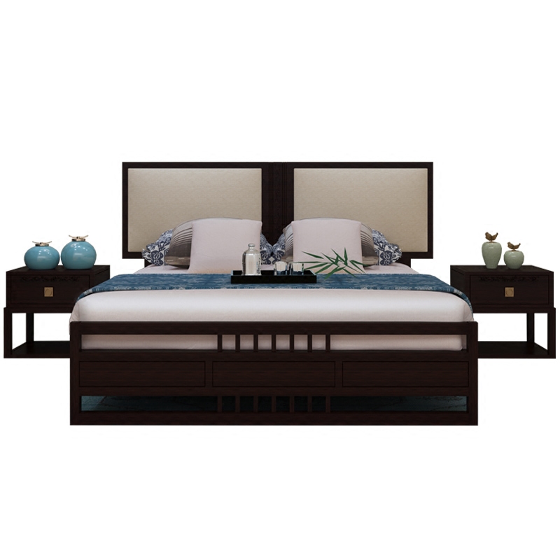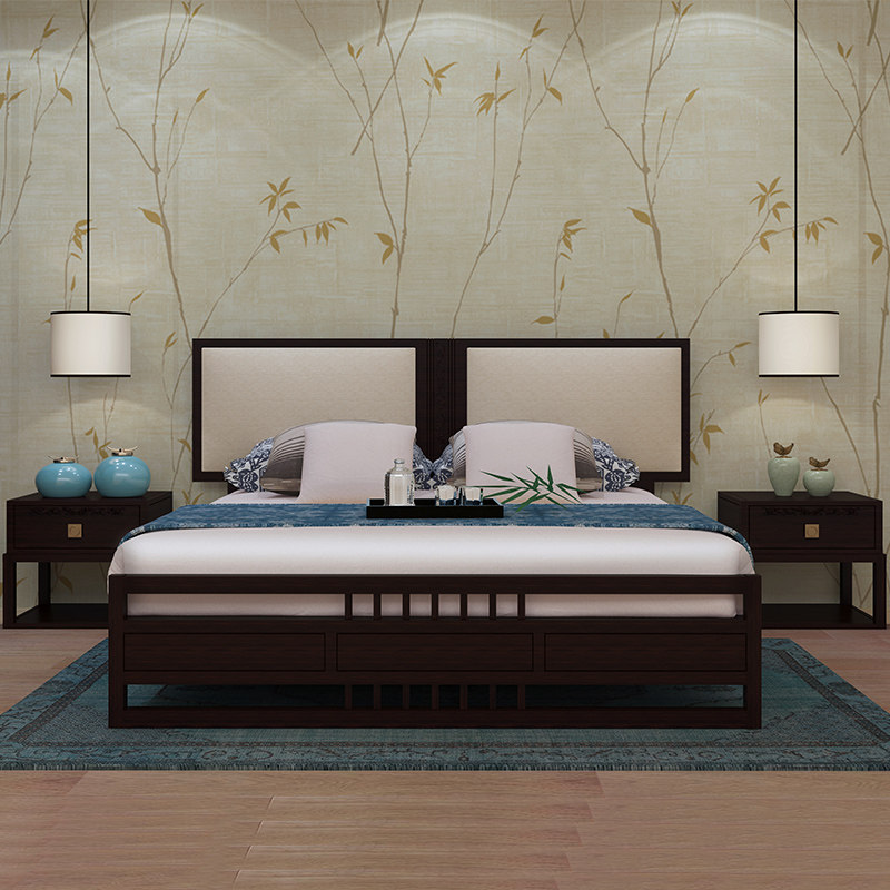 斯顿英少 Новый китайский стиль современный китайский сплошной древесной кровать 1,8 м главная спальня сплошной деревянной двуспальной кровать дзен дзен дзен в месте