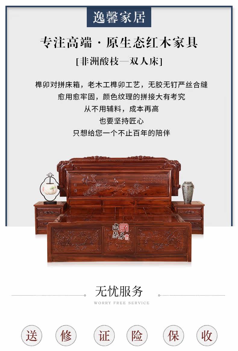 Корзина из палисандра из натурального дерева для спальни, классическая мебель для двоих, 1.8м