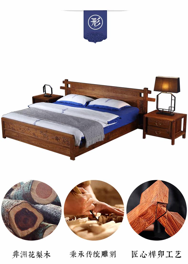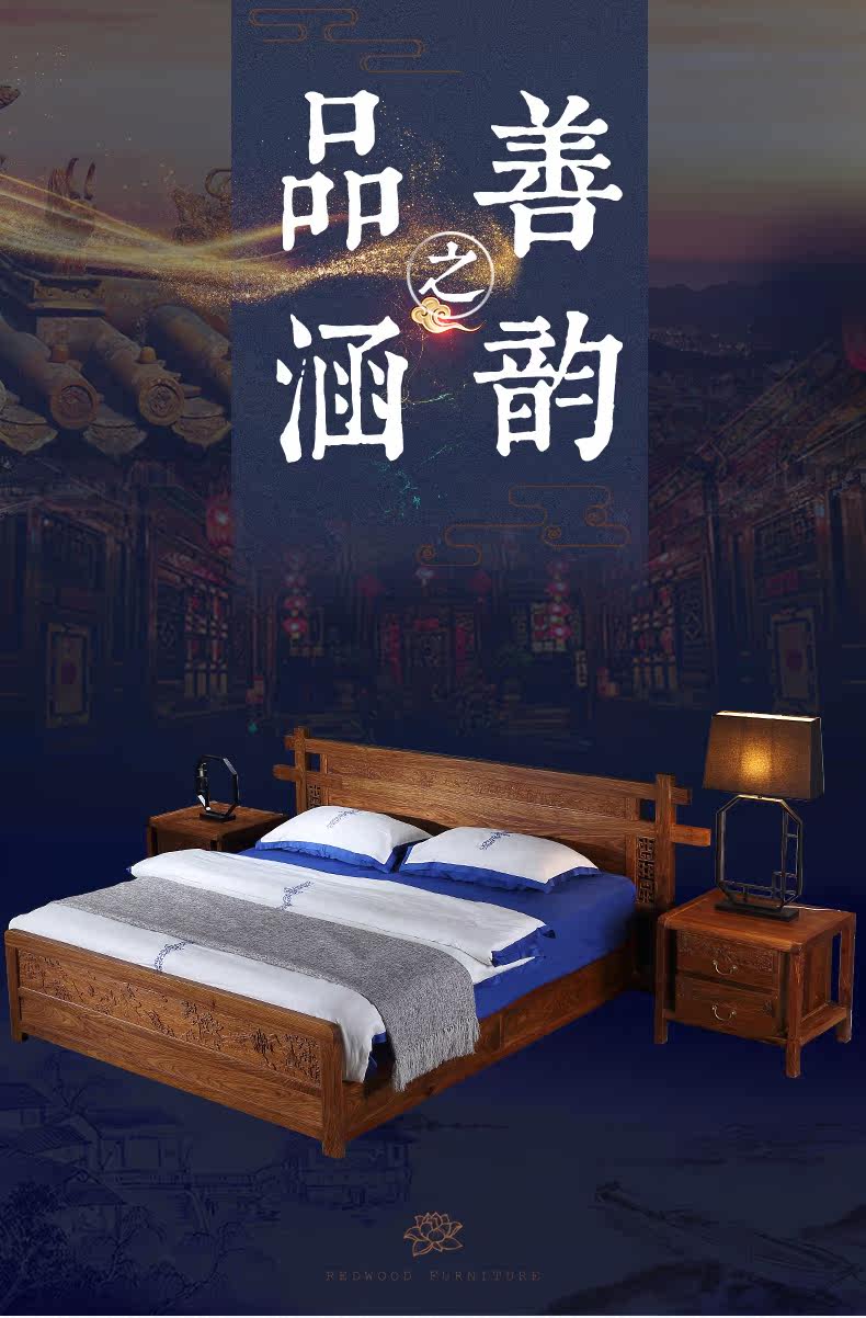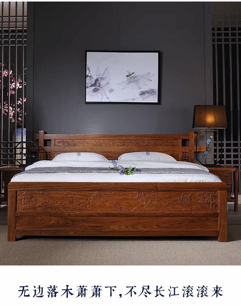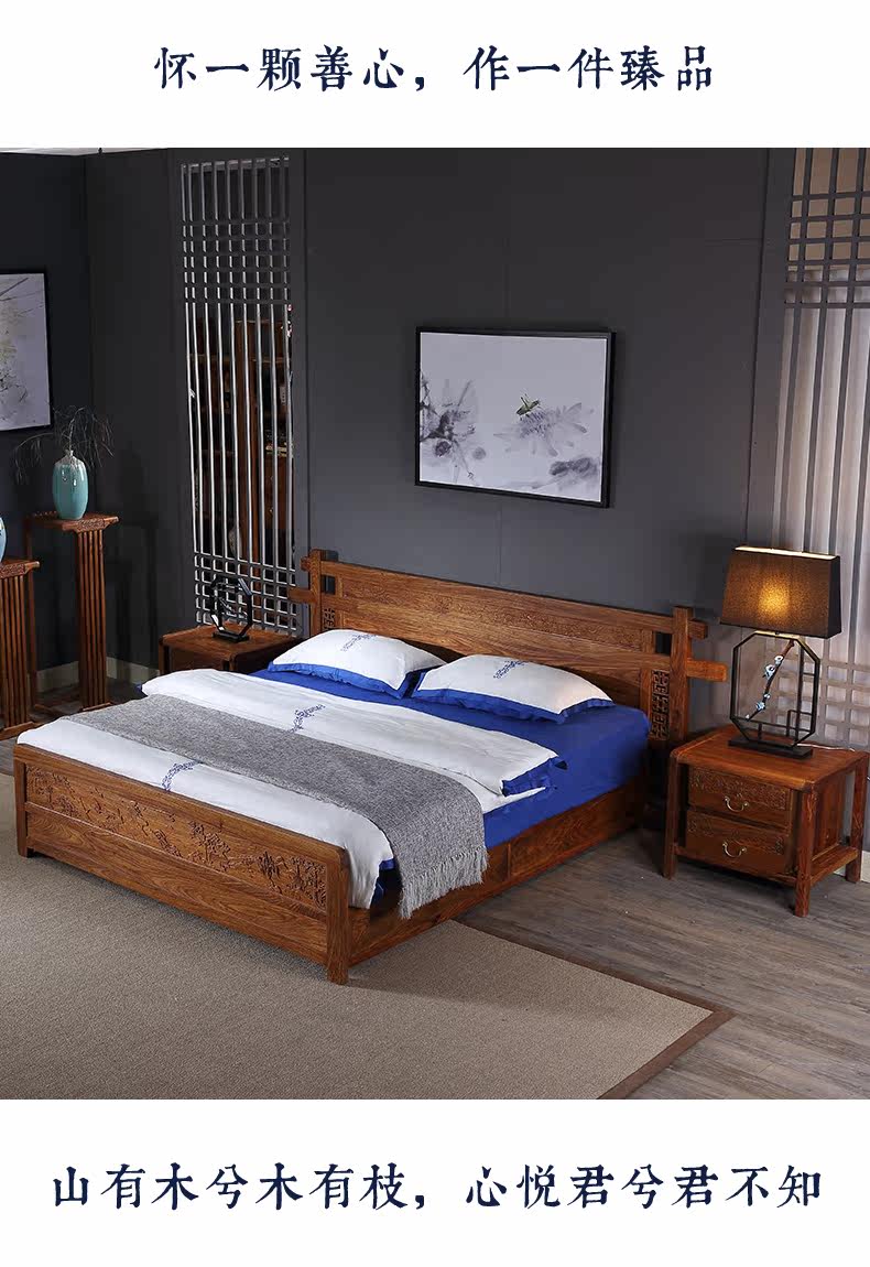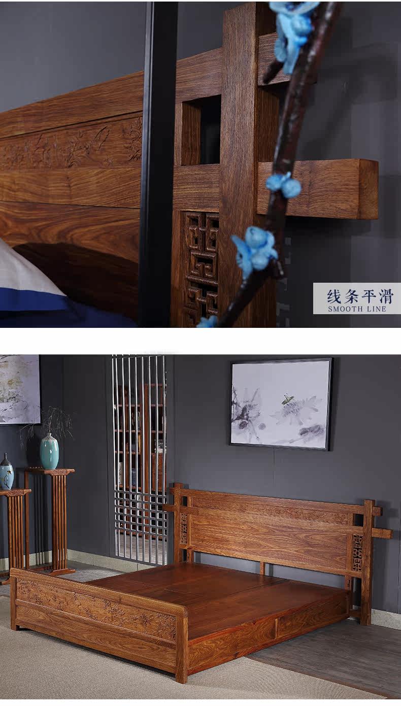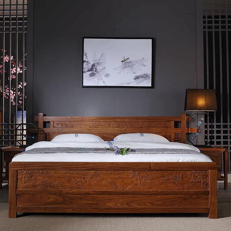 Классическая мебель из розового дерева из натурального дерева для спальни для двоих, 1.8м