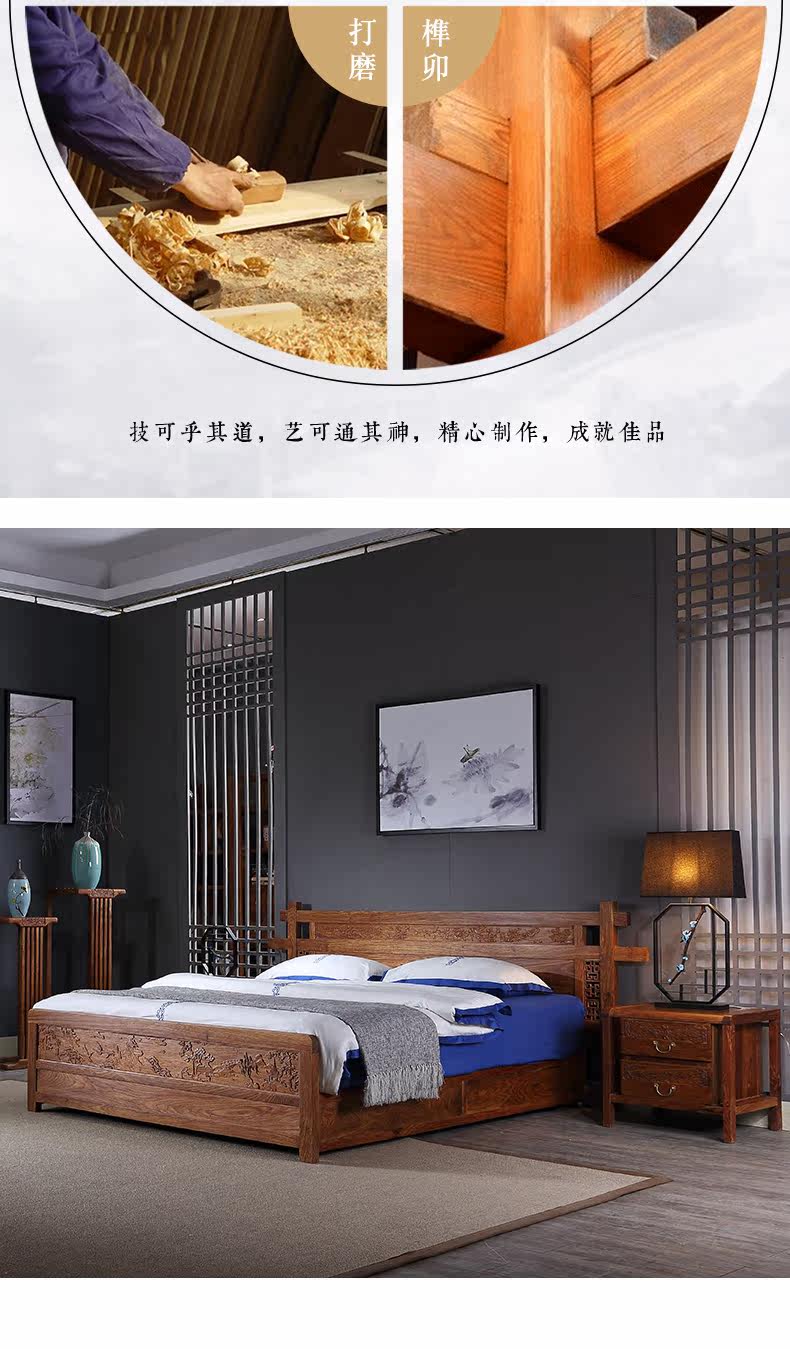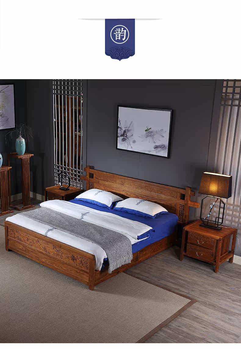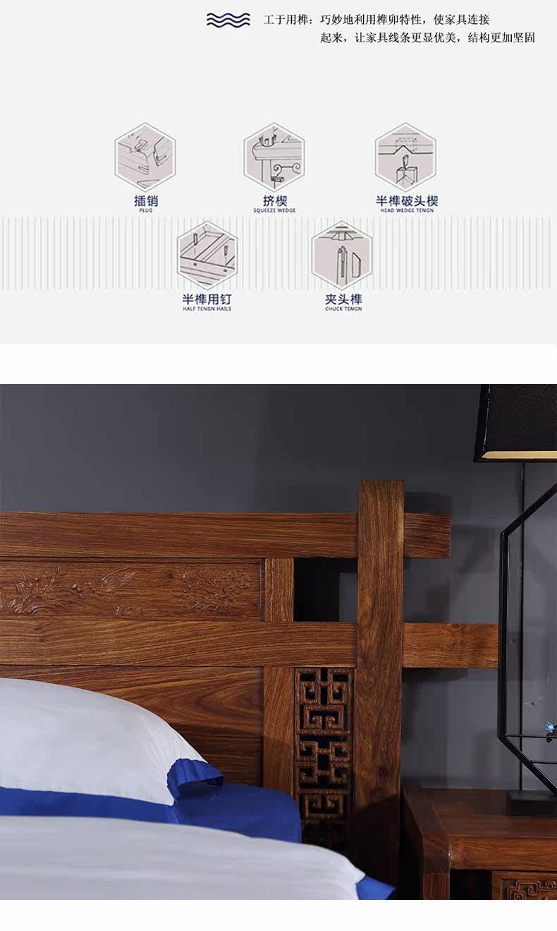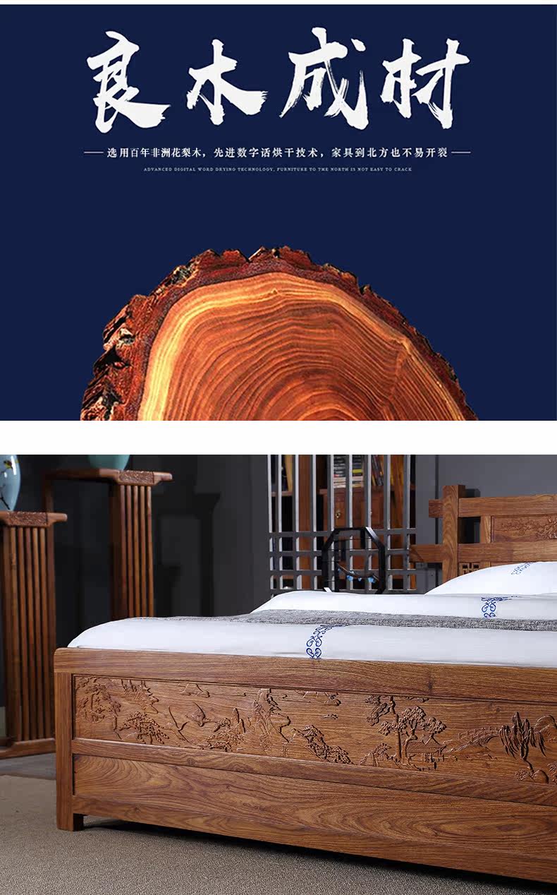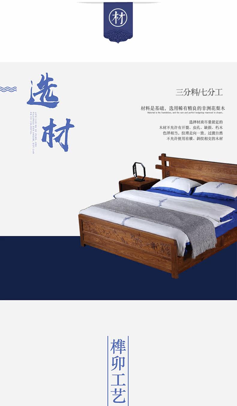 Классическая мебель из розового дерева из натурального дерева для спальни для двоих, 1.8м