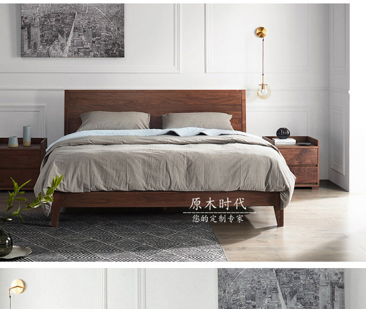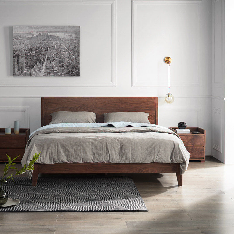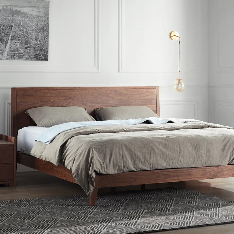 Вишневое дерево кровать японская стиль северная сплошная кровать из дерева 1,5 м черная кровать из орехового дерева