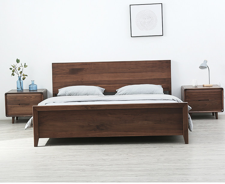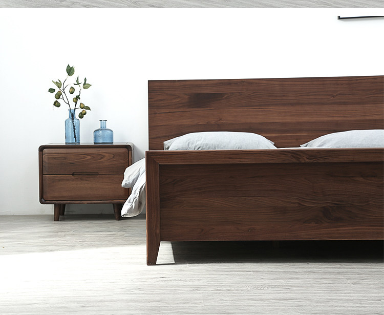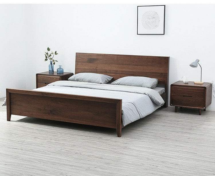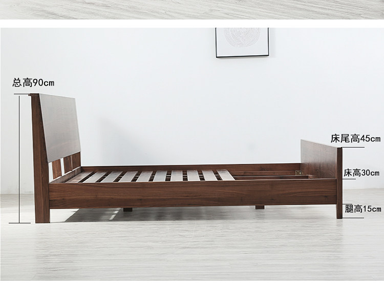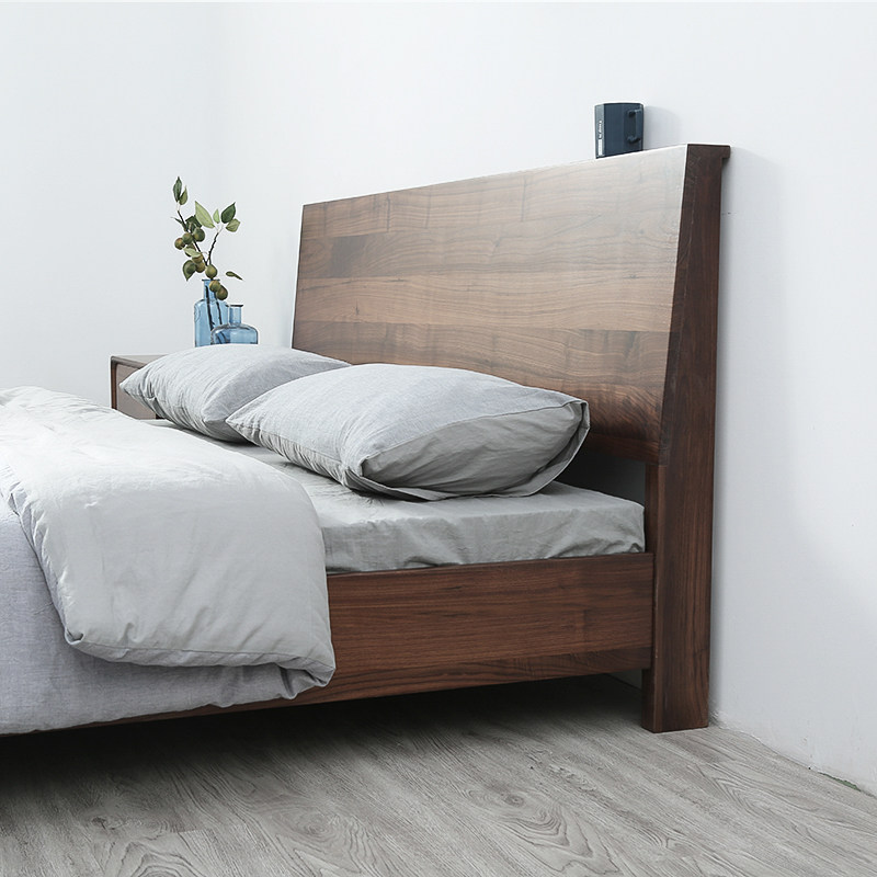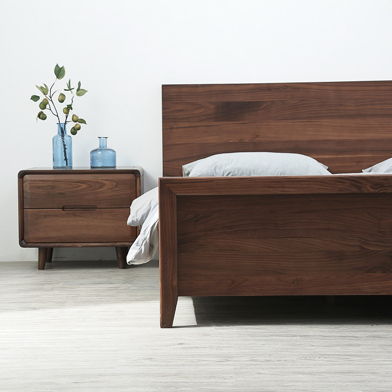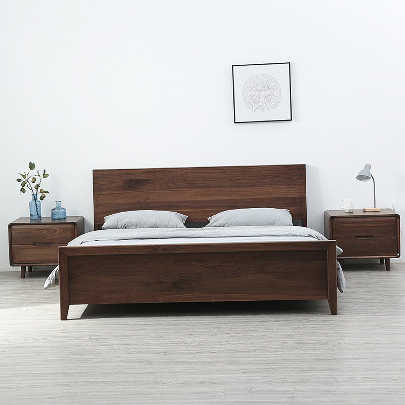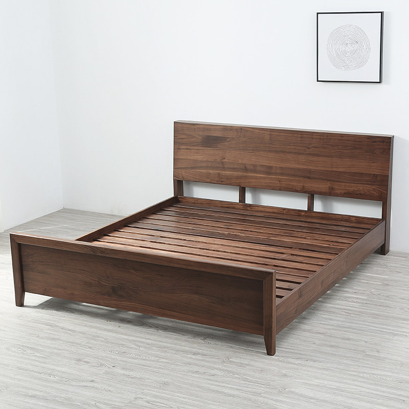 Черный грецкий орех -одиночный кровать ежедневно тип 1,8 метра 1,5 -метровый кровать современный минималистский сплошной дерево.