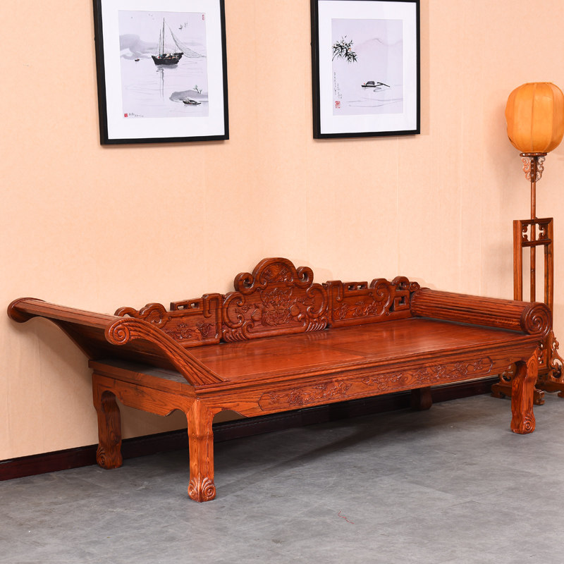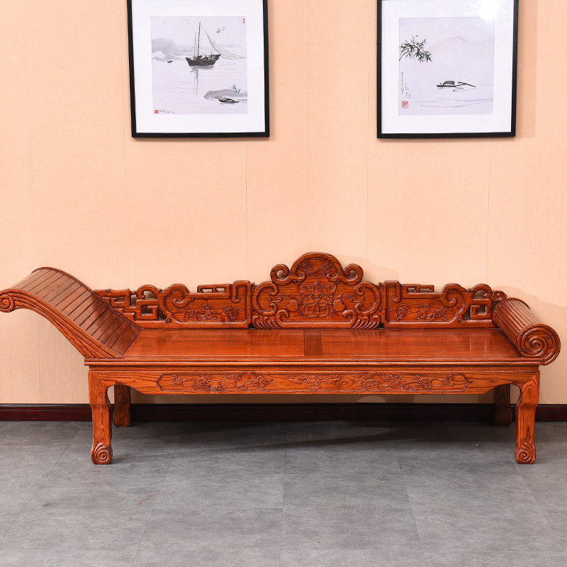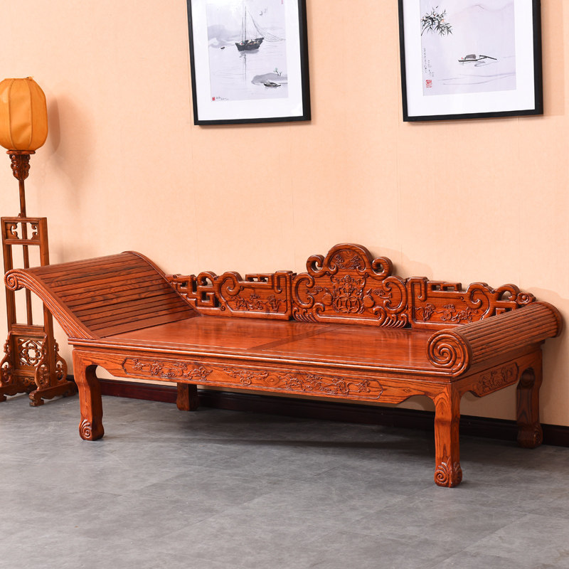 Красавица Palace зависит от твердой древесины Luo Han Bed Lazy диван -кровать вырезана для односпальной кровать Antique Film and Television