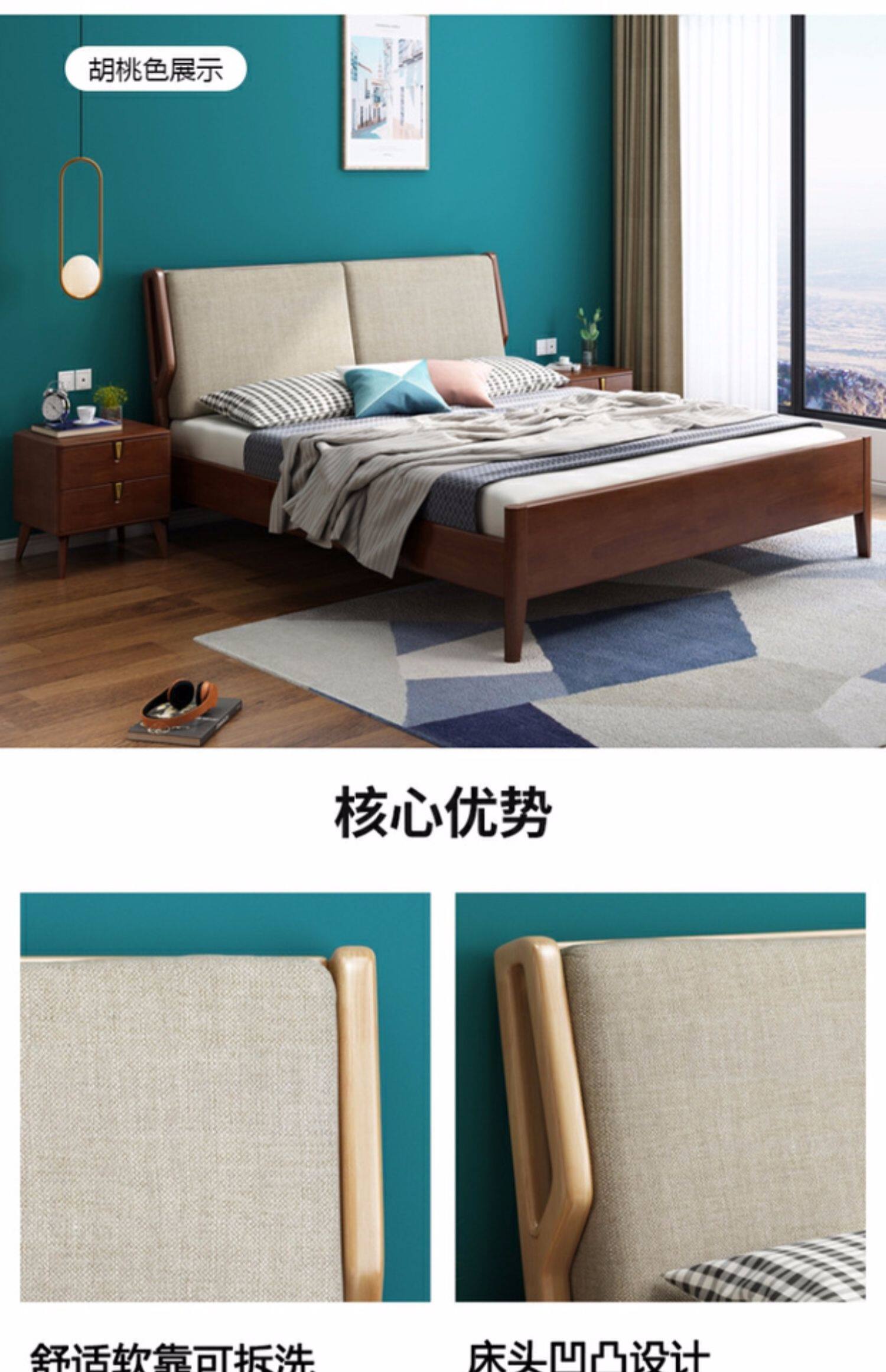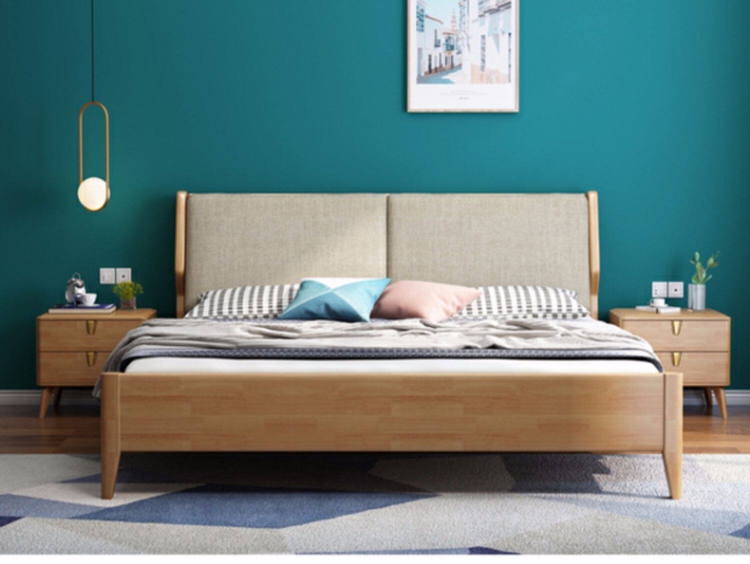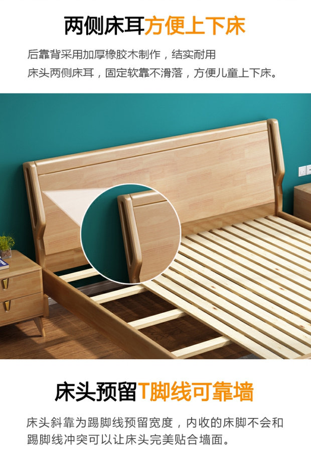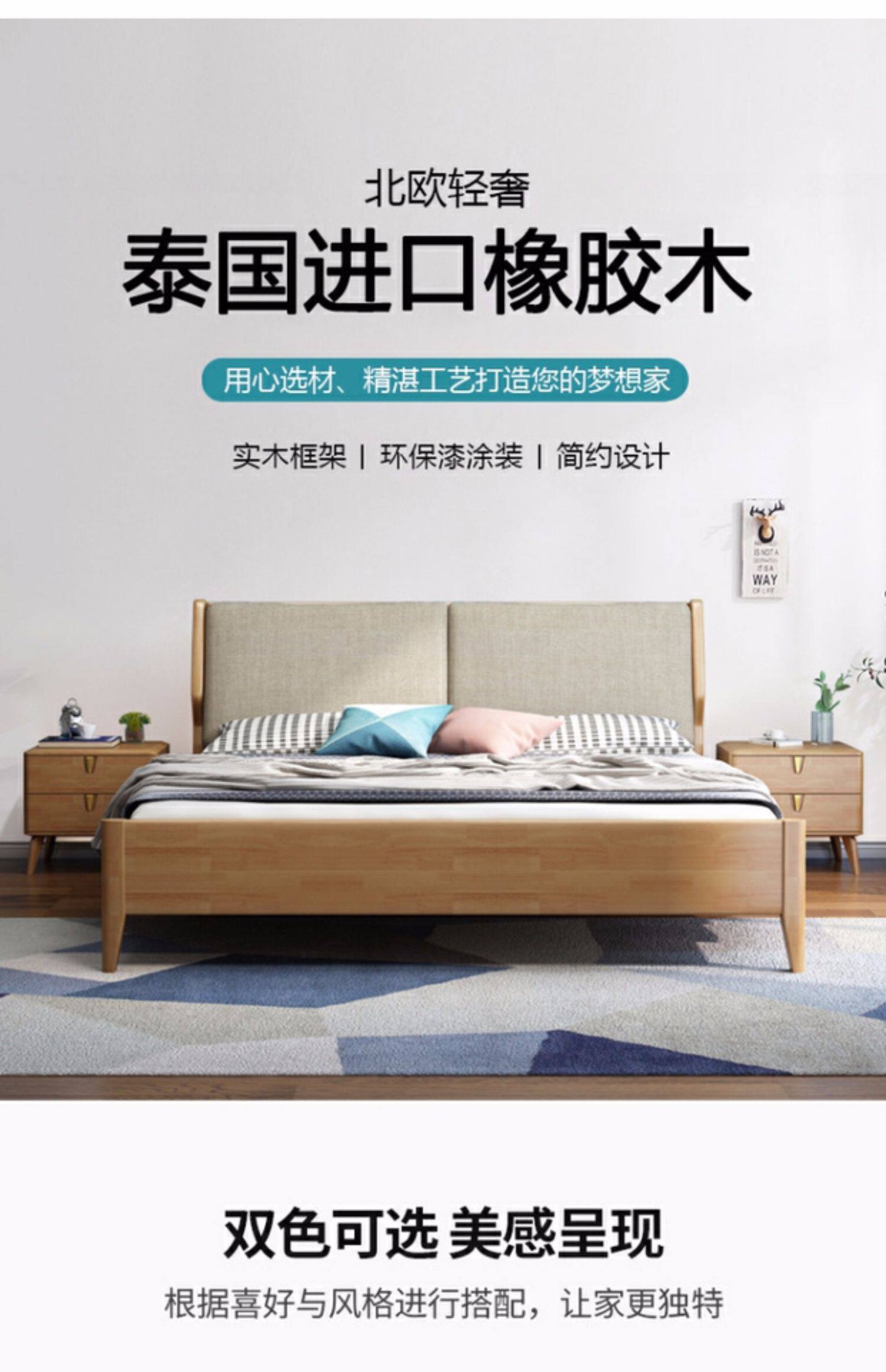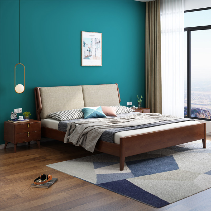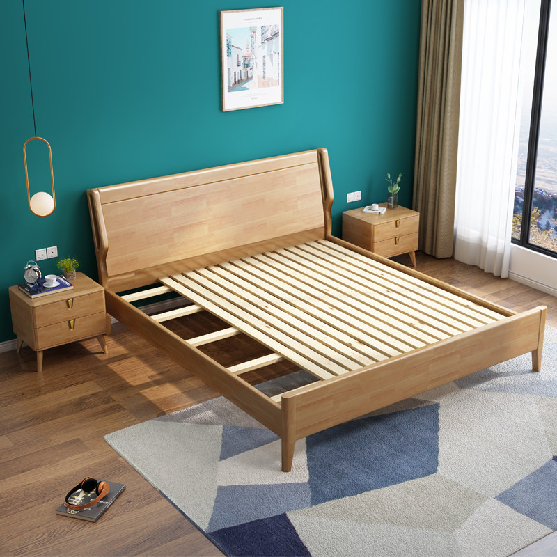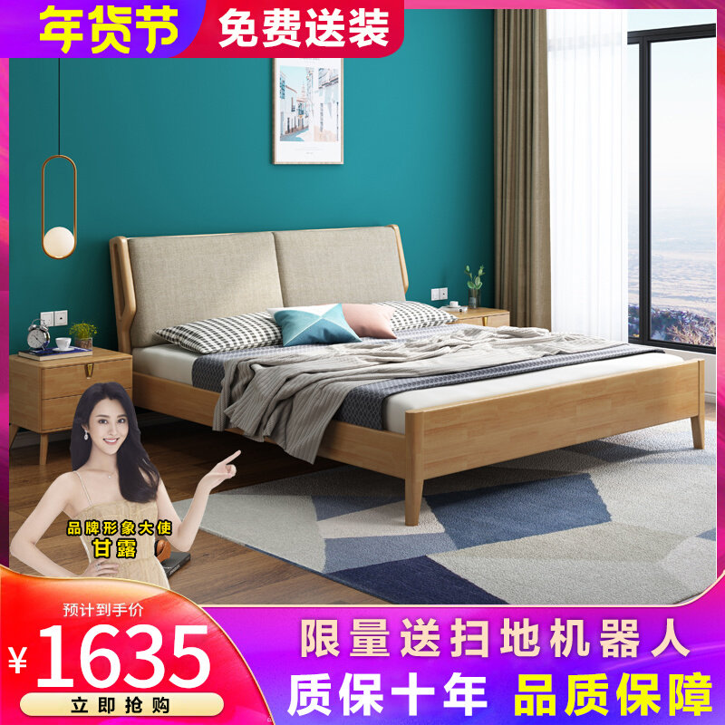 Северный стиль сплошной древесной кровать Простая современная главная кровать двуспальная кровать 1,8 метра для взрослых кровать с большой кроватью.