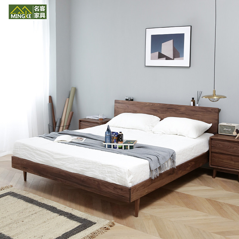 Nordic All -Solid Wood Black Bedut Bed Японская простая современная мебель для бревен
