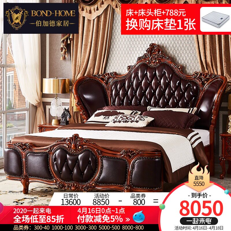 Европейская световая роскошная роскошная все -сальниковая деревянная кровать двойная главная спальня 1,8 метра американская кожаная спальня кровать принцесса глубокая красивая резьба