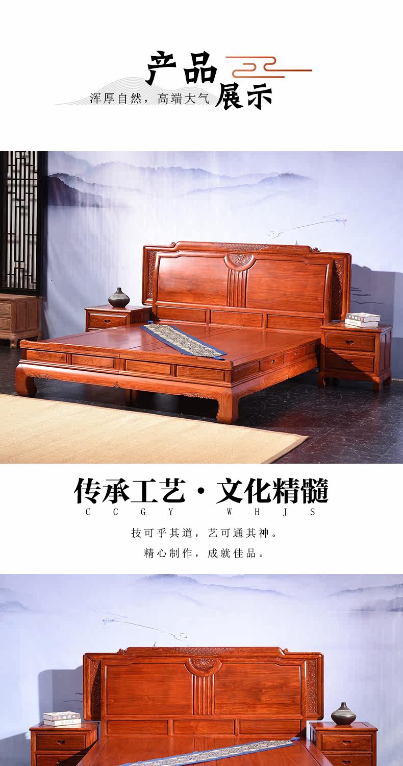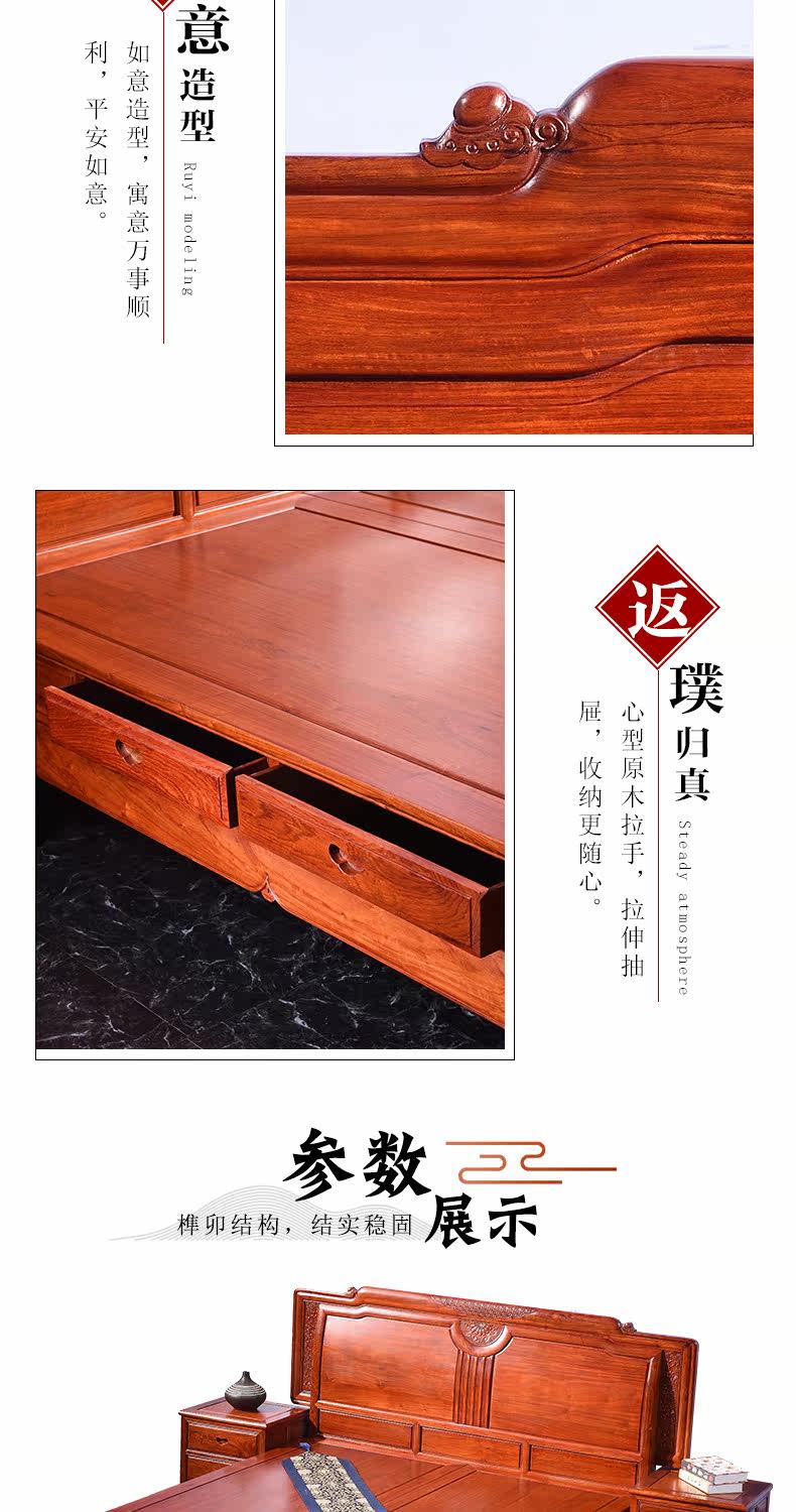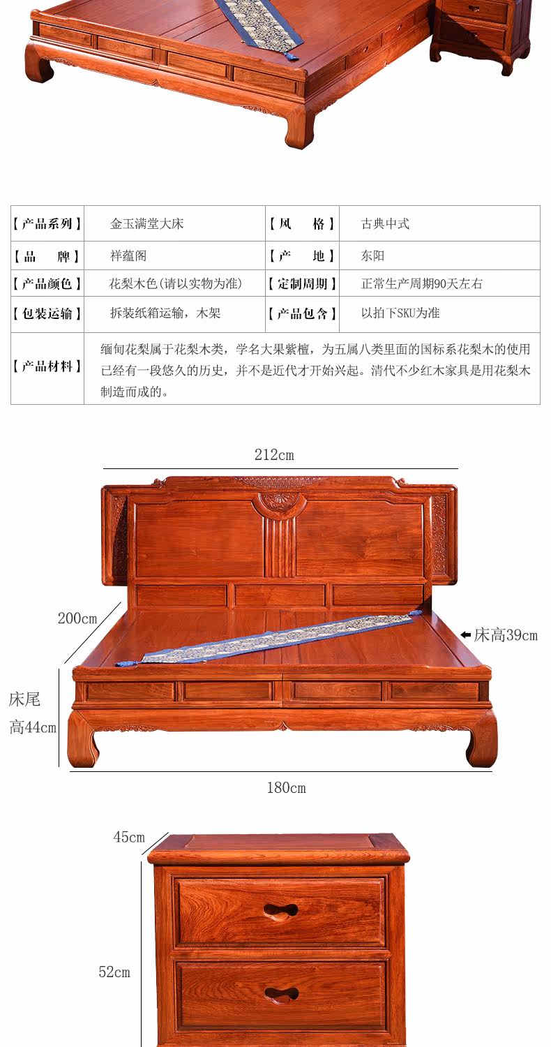 祥蕴阁 Цзинью Мантанг Махоган Большая кровать Мьянмар Розовойвуд Большой фрукты мебель из розового дерева Новый китайский классический роскошный тип