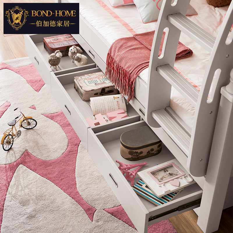 伯加德 Детская мебель, кровать из массива дерева, двухъярусная кровать, скандинавская двухъярусная кровать из цельного дерева, многофункциональная двухъярусная кровать