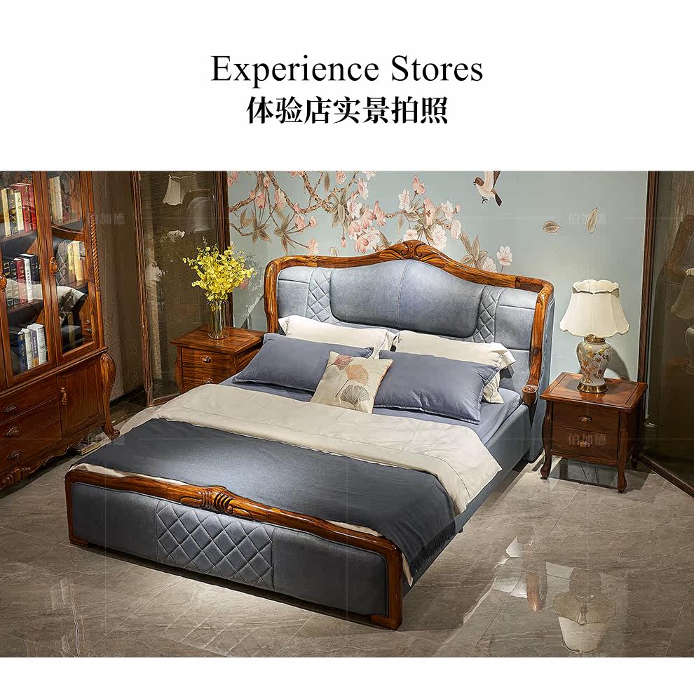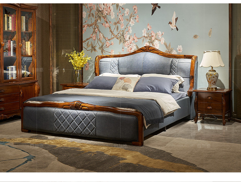 伯加德 Европейский стиль черный золотой дерево двуспальный дерево сплошной древесина с твердым деревом резан