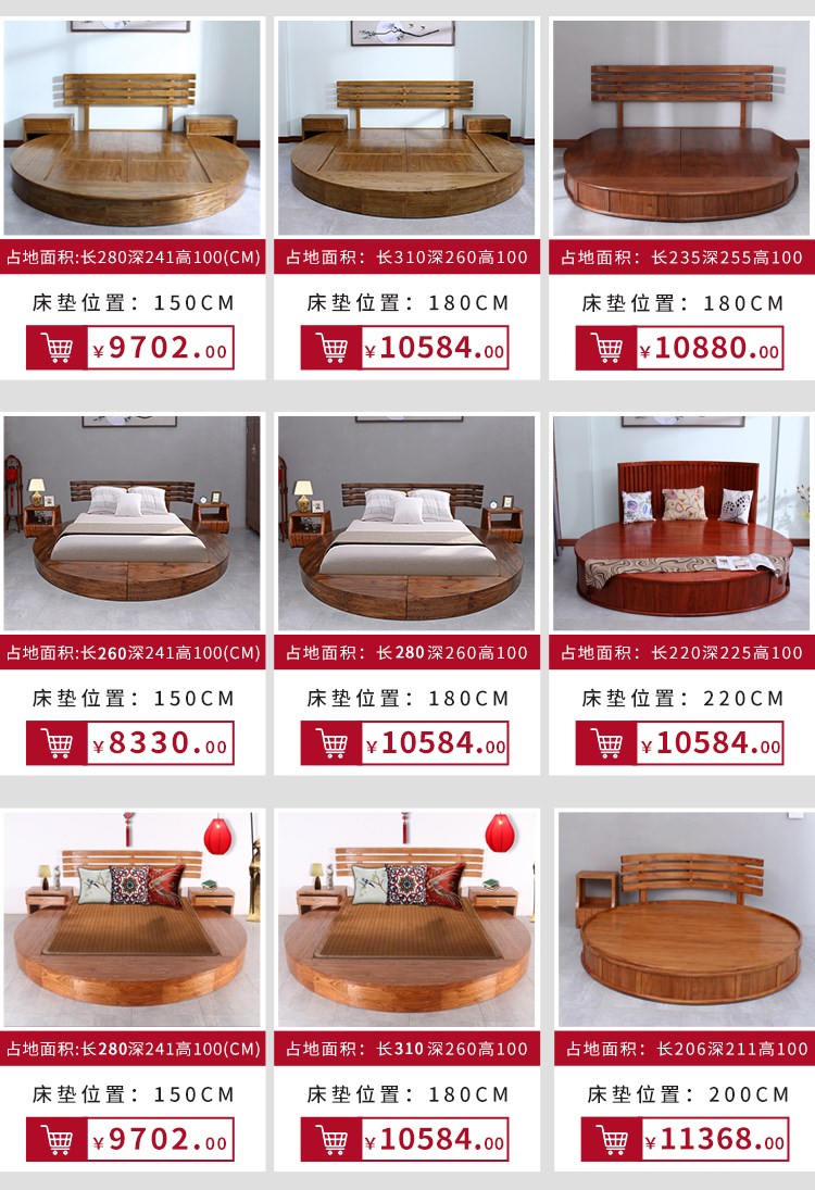 - Круглая кровать из розового дерева 1,8 метра+две прикроватные таблицы B