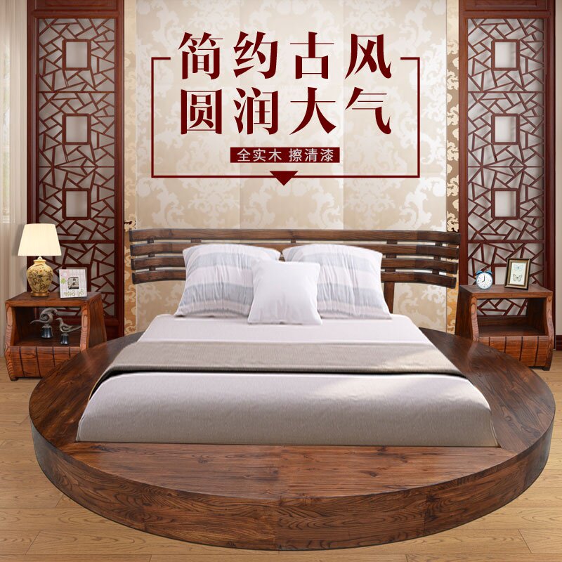 - Круглый кровать из грецкого ореха 1,8 метра+два прикроватных стола а