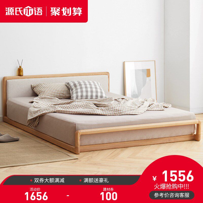 Genji Muyu Сплошная деревянная кровать северная минималистская вода, кровать Litami, современный легкий роскошный блэк -персик двойной мягкий кровать