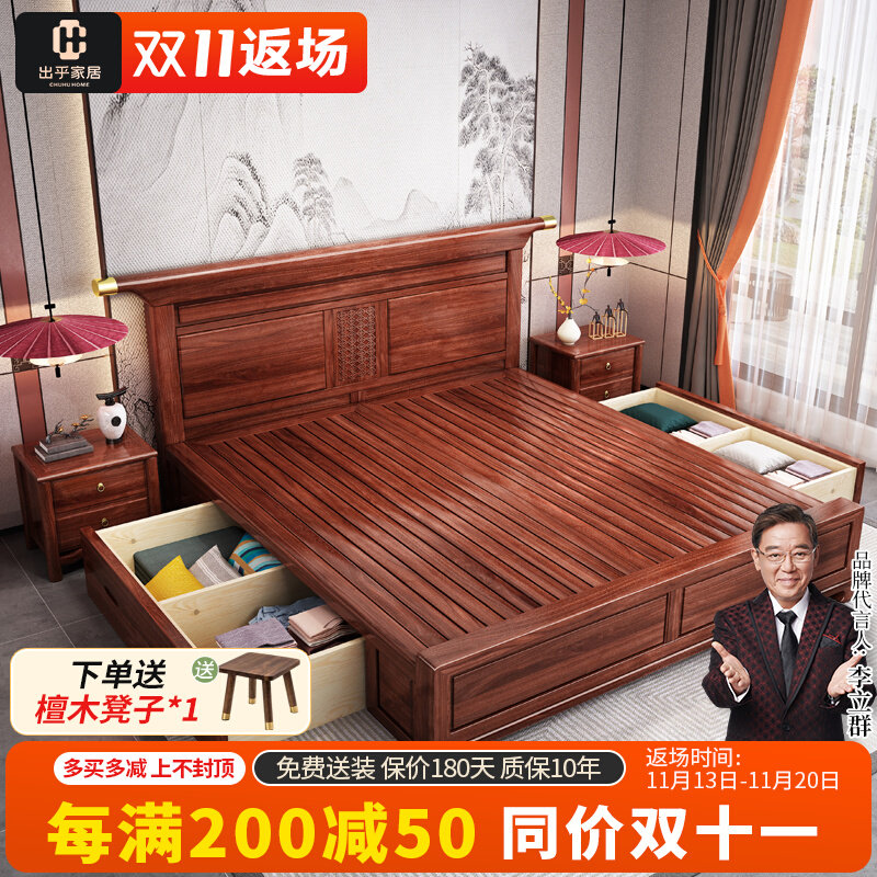 Качественная современная мебель из натурального дерева для спальни для двоих, 1.8м