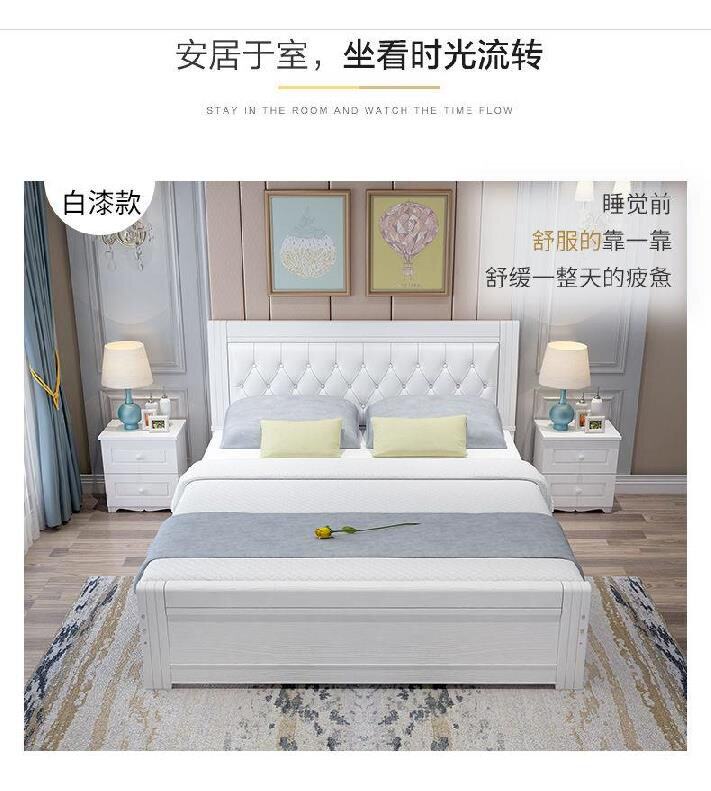 - Белая кровать +2 прикроватная таблица [Отправить матрас] -z66
