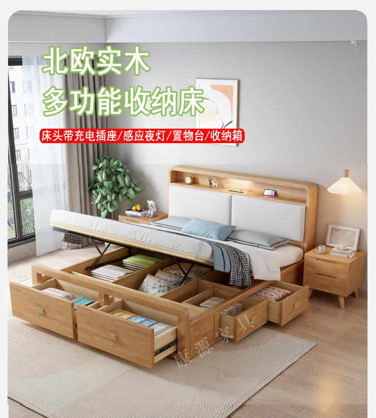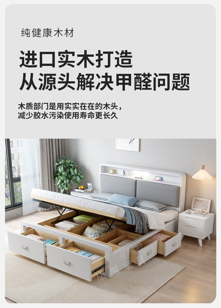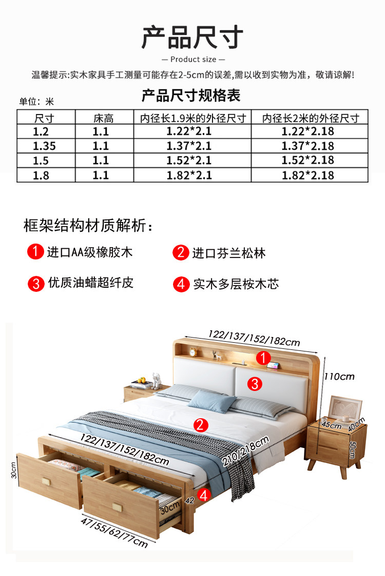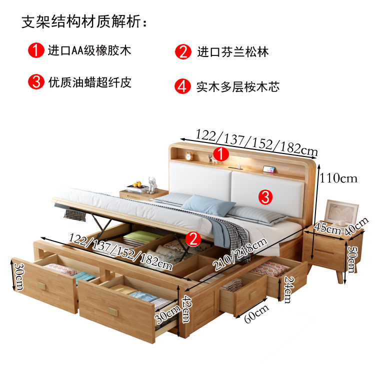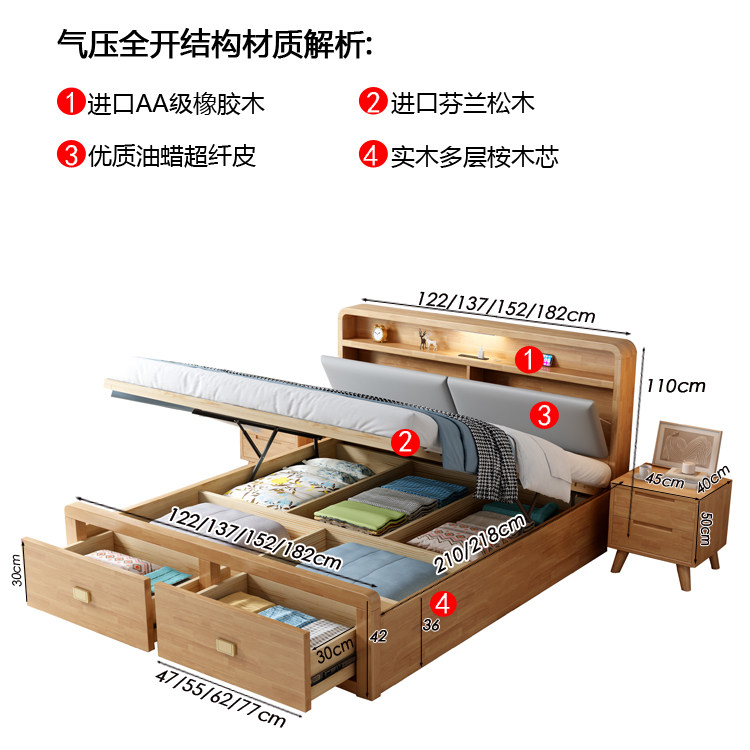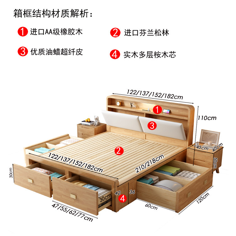Nordic All -Solid деревянный кровать 1,8 м. Один двойной бревен цвет 1,35 м давление воздуха.