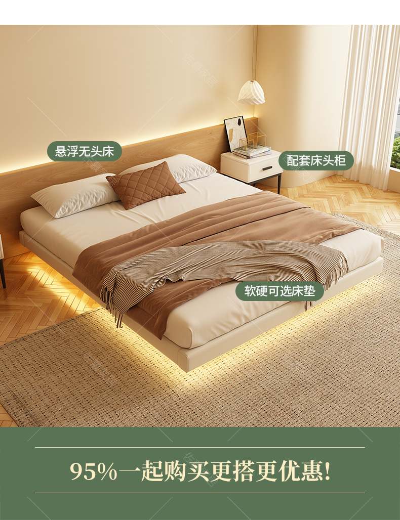 佐慕 Различная кровать подвесная кровать подвесная кровать, безмолвная спальня Hyundai Простая датчика подвесная кровать рама сплошной древесина