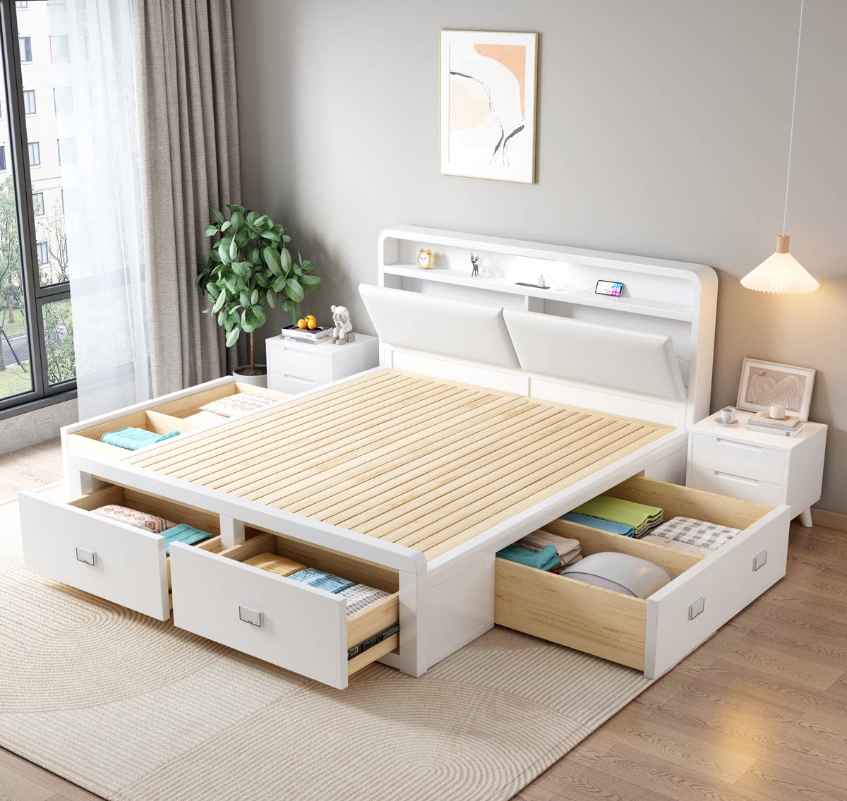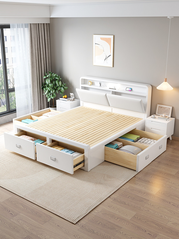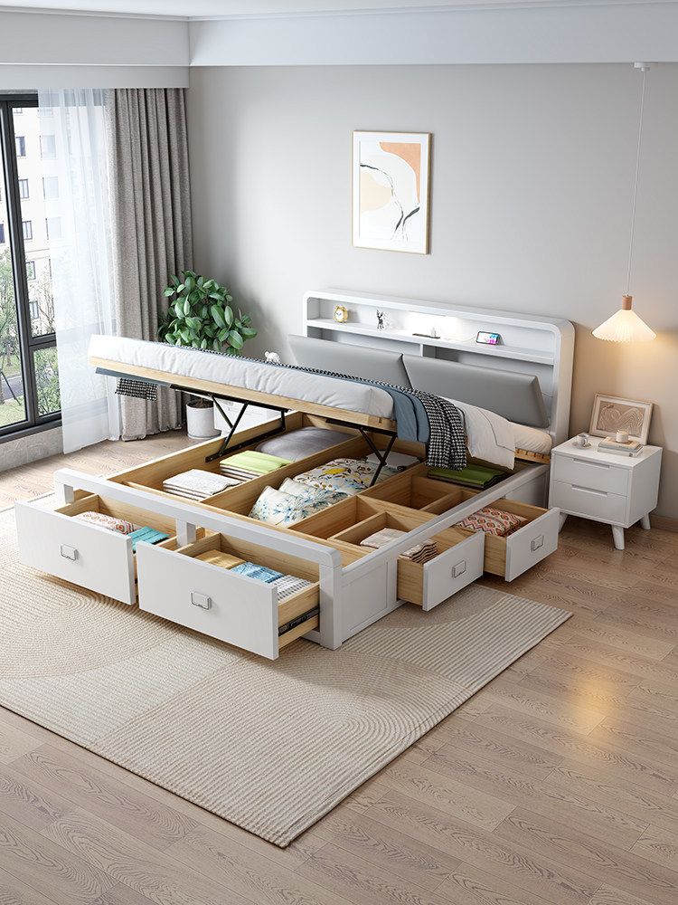 Nordic All -Solid Деревянный слой 1,8 метра Одинокий двойной белый 1,35 -метровый давление газа Высокая коробка 1,2 метра ящик 2 × 2,2 метра хранения