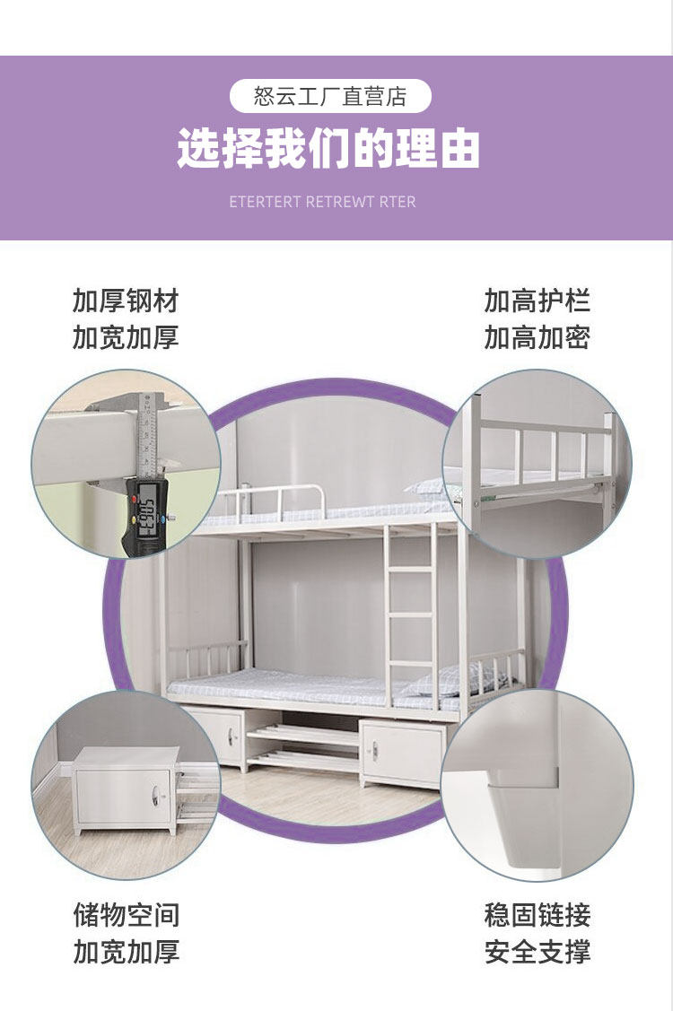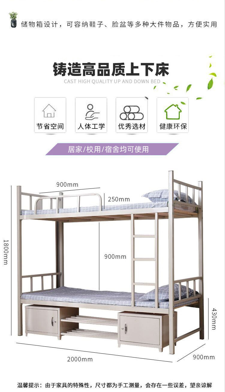 Два -слойные двухэтажные двойные высокие кровати в железной кровати, двухсторное, двухсторное студенческое общежитие, спальня, железная кровать для работы.