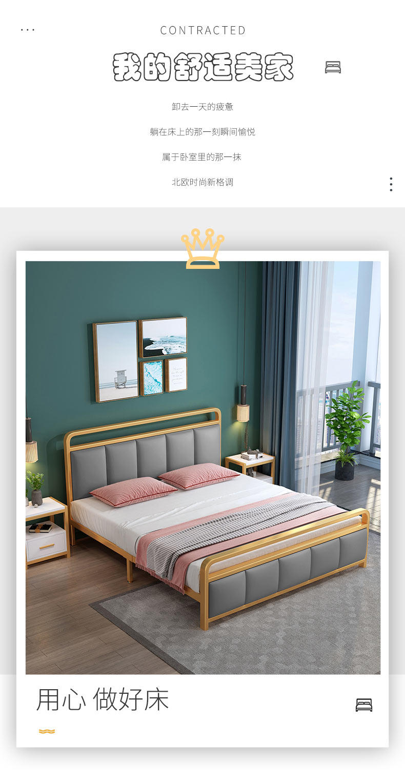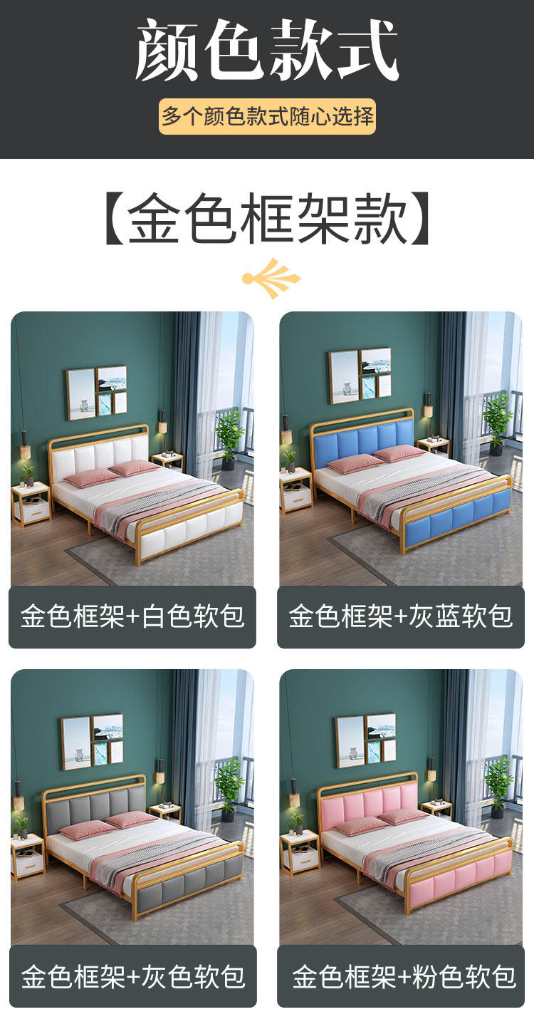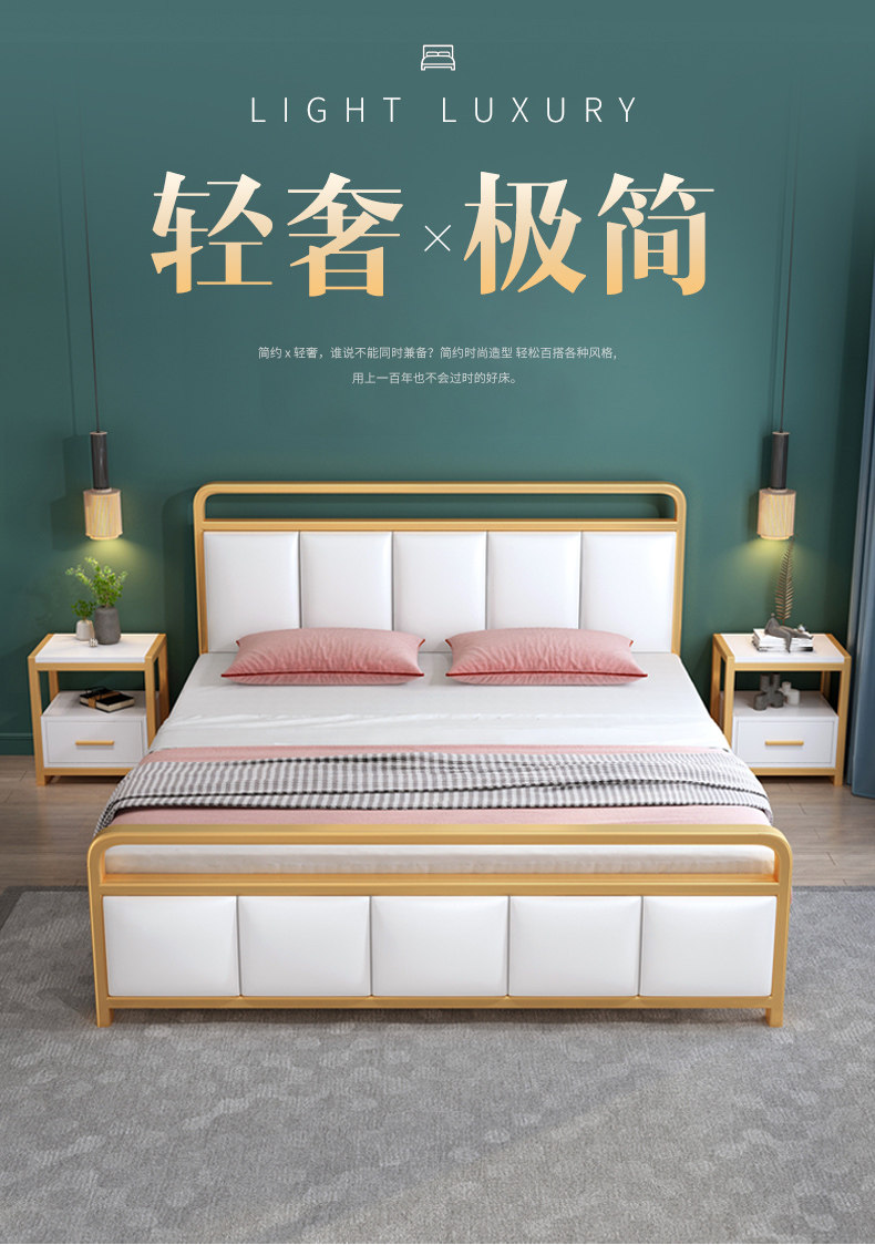 Nordic Light Luxury Iron Art двуспальная кровать 1,8 метра квартиры прокат дома сгущенной подкрепление однород 1,5 метра железного шельфа
