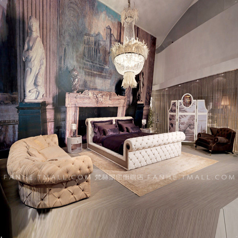 После двуспальной кровати современная главная спальня 1,8 метра. Кровать Потяните бархат, большую кровать, двуспальная кровать, 2 метра 2,2 метра 2,4 свадебной кровати