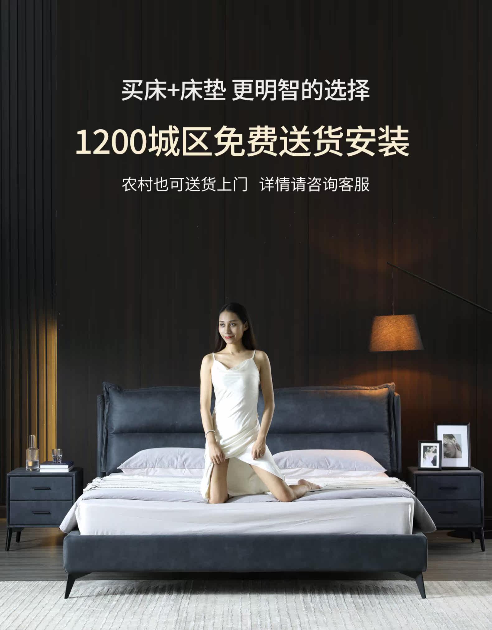 - Технологическая ткань кровать +[мягкий и твердый двойной матрас] +1 прикроватный стол