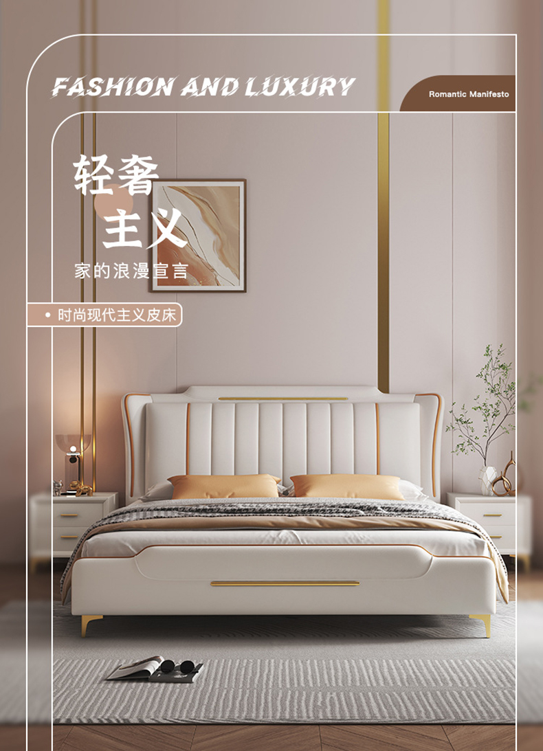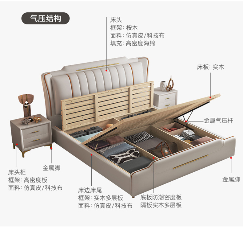 Свадебная кровать Zali Family Technology Company Modern Simple 1,8 двойная главная спальня Свадебная кровать 1.5 Светловая легкая роскошная кровать сплошная древесная кровать