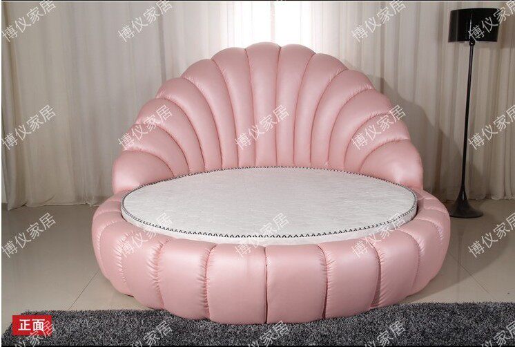 Европейская стиль круглая кровать мягкая кровать отель Новая двуспальная кровать кожаная кровать 2*2 метра большая кровать свадебная кровать кожаная кровать круглая кровать