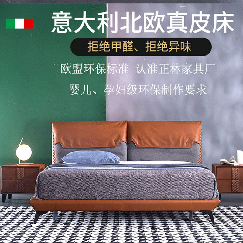 爱家居 Северная Европа 1,5 метра 1,8 метра искусства современная главная спальня небольшие подразделения минималистские легкие роскошные кожаная двуспальная кровать B06