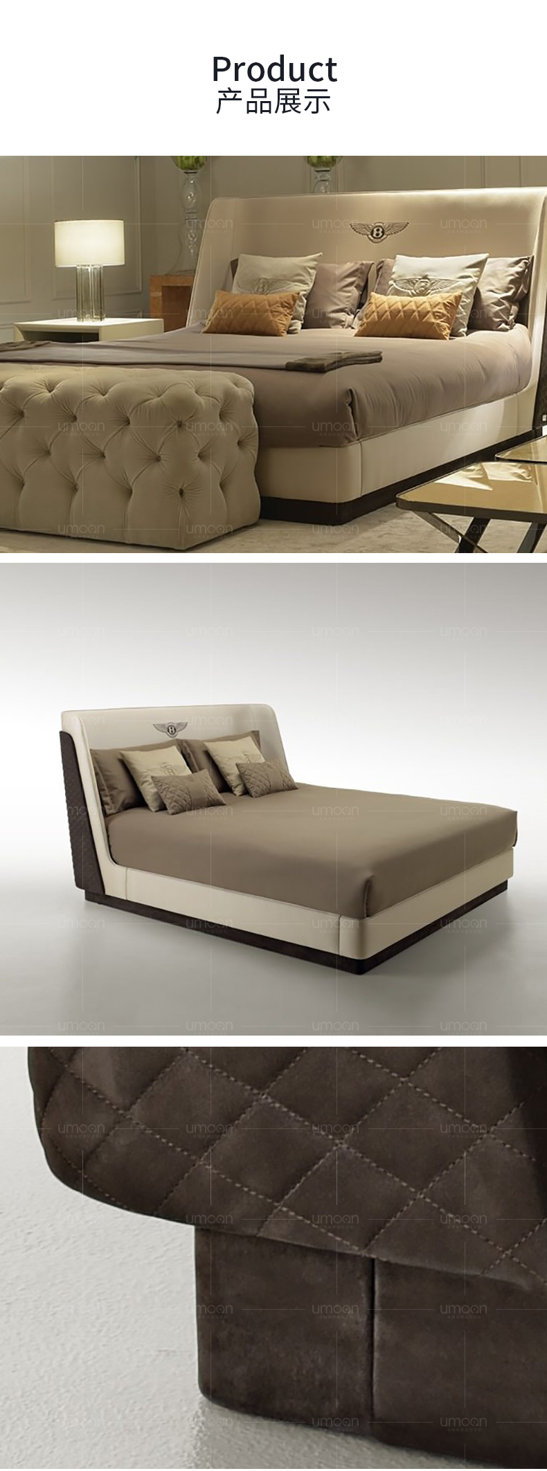 有模有样 Высокий индивидуальный итальянский современный карликовый карлик Bentley Bentley Легкая роскошная спальня двуспальная кровать