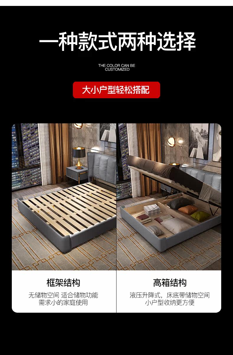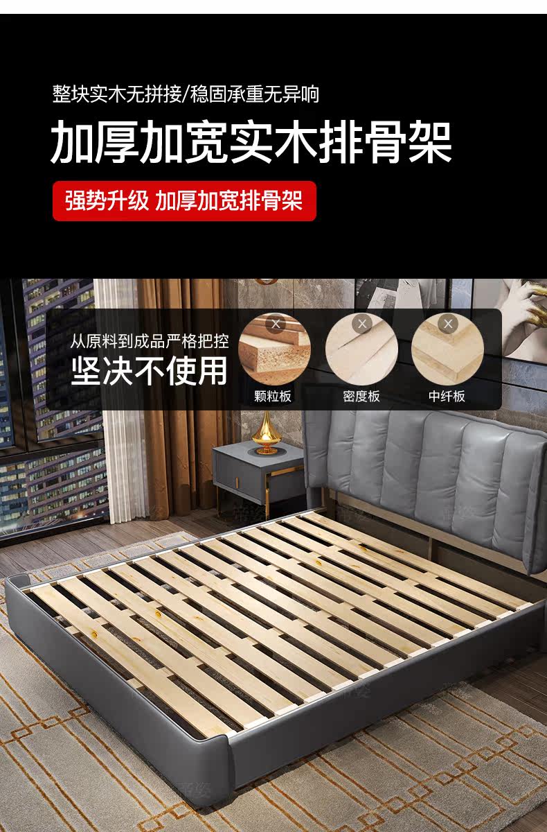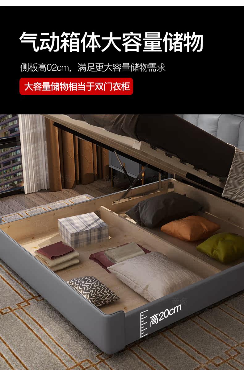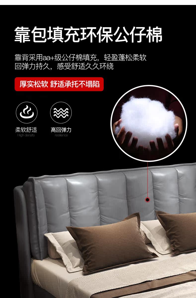 Кожаный прикроватный слой коровьи светильники роскошная главная спальня кровать 1,8 метра скандинавской вниз по нисходящей коробке -модерн двуспальная двуспальная кровать 2