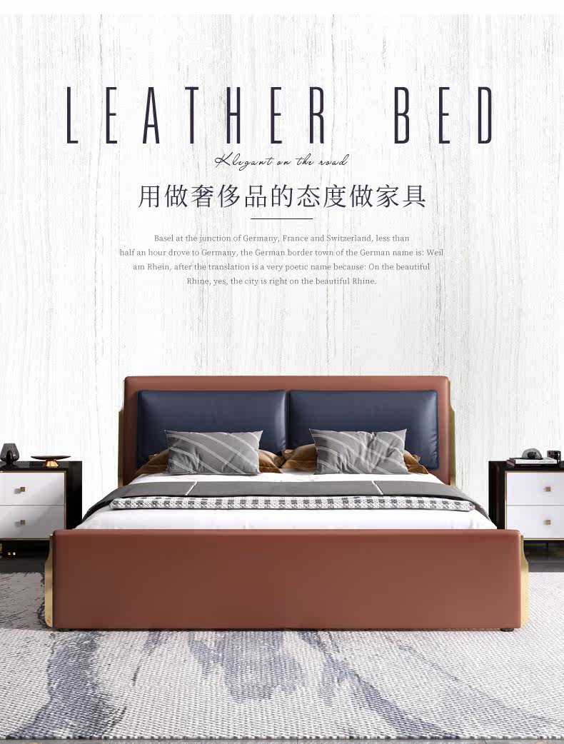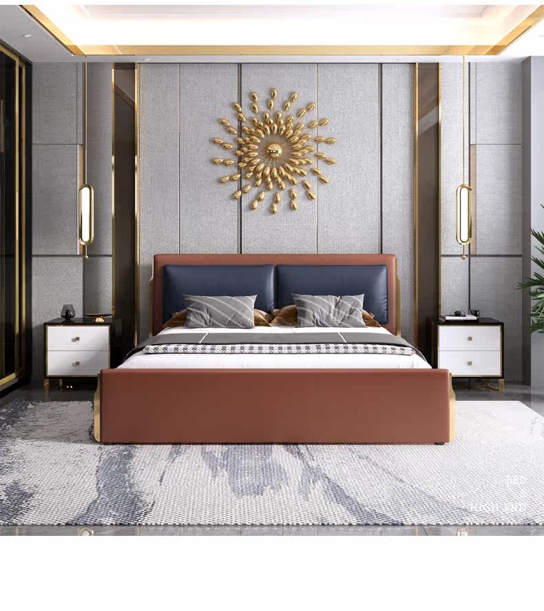 Пост -Модерн Гонконг -стиль легкая роскошная кожаная кровать простая современная роскошная девушка в главной спальне маленькая свадебная кровать