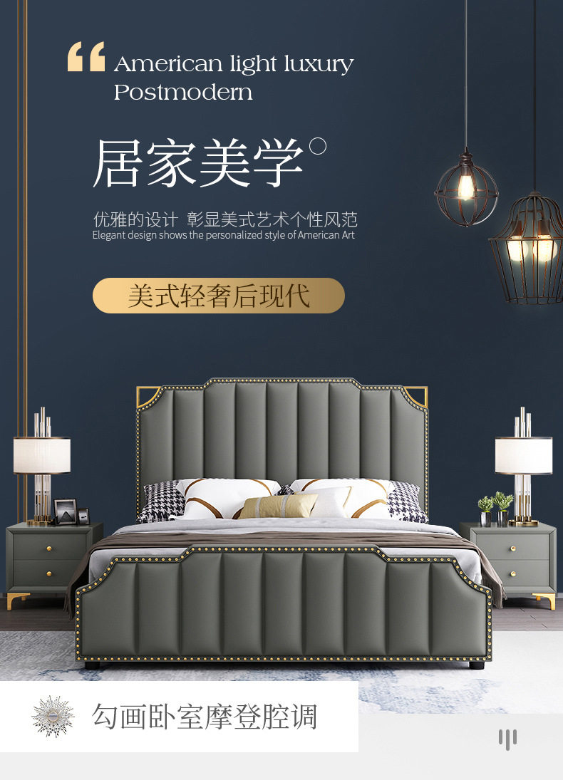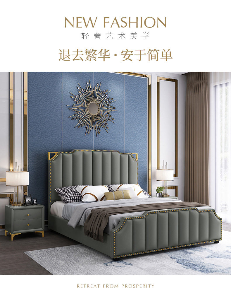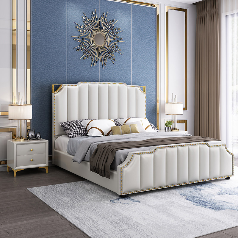 Кожаная кровать, означающая легкая роскошная современная главная спальня свадебная кровать 1,8 метра большие кровати ins -ins -сетка с сетью красная кровать для спальни простая мягкая кровать