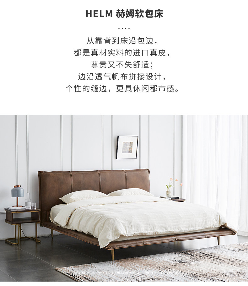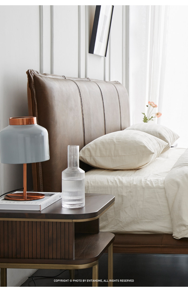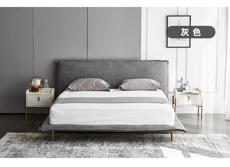 Современная минималистская итальянская кожаная кровати дизайнер ретро свадебная кровать Light Роскошная северная европейская кожаная двуспальная кровать