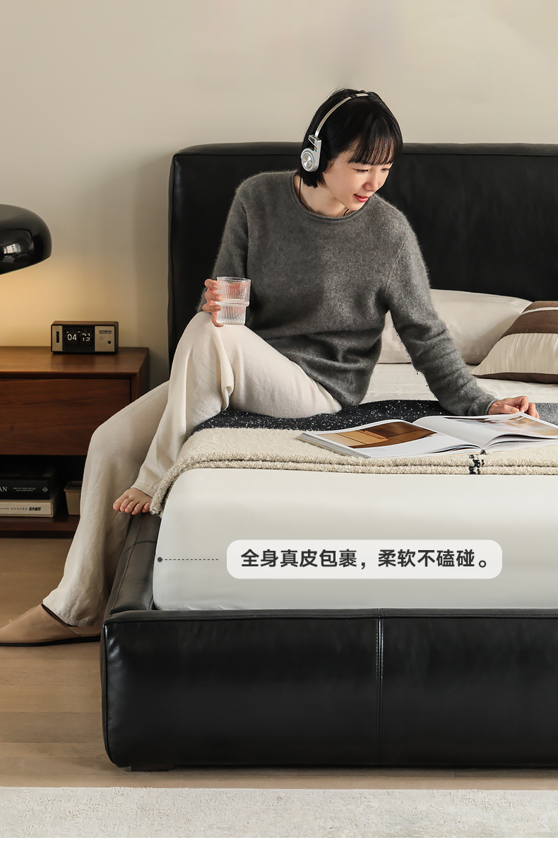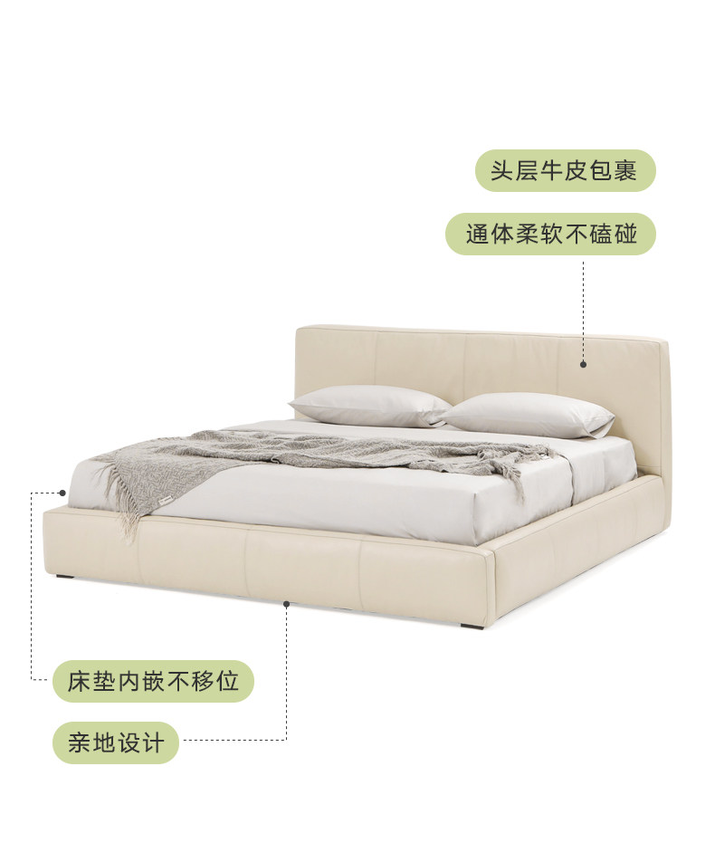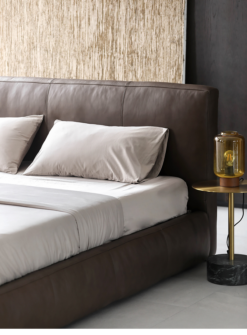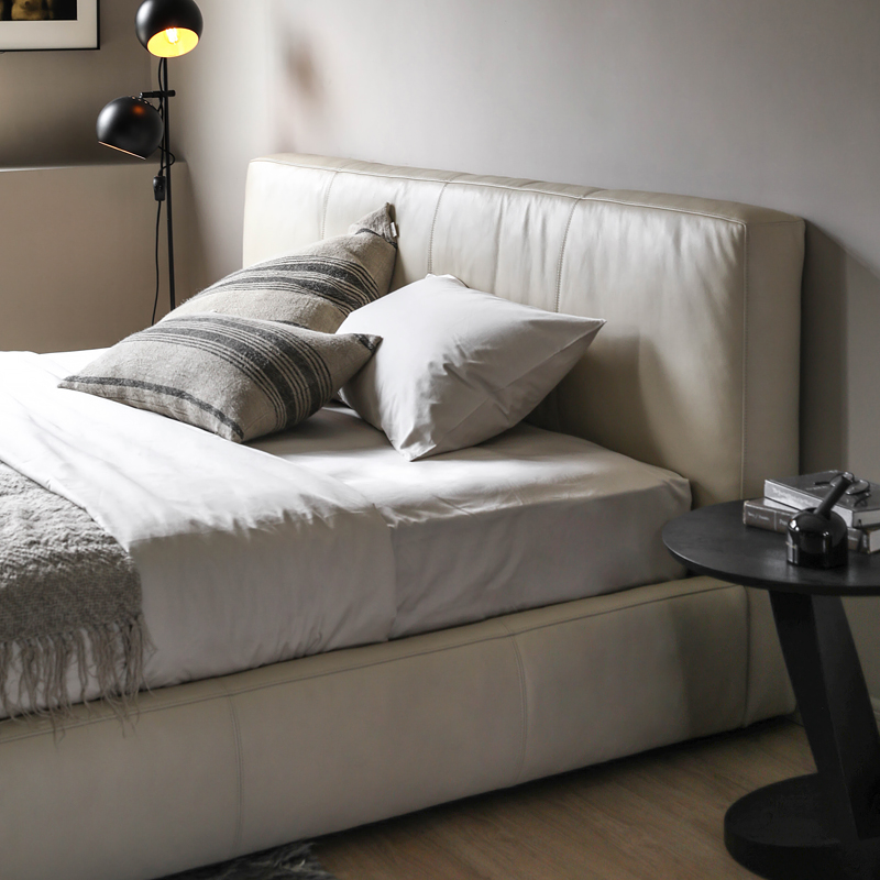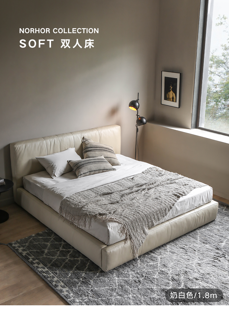 Скандинавское выражение norhor/итальянский французский кремовый стиль/МЯГКАЯ полностью кожаная мягкая упаковка двуспальная кровать в главной спальне напольная